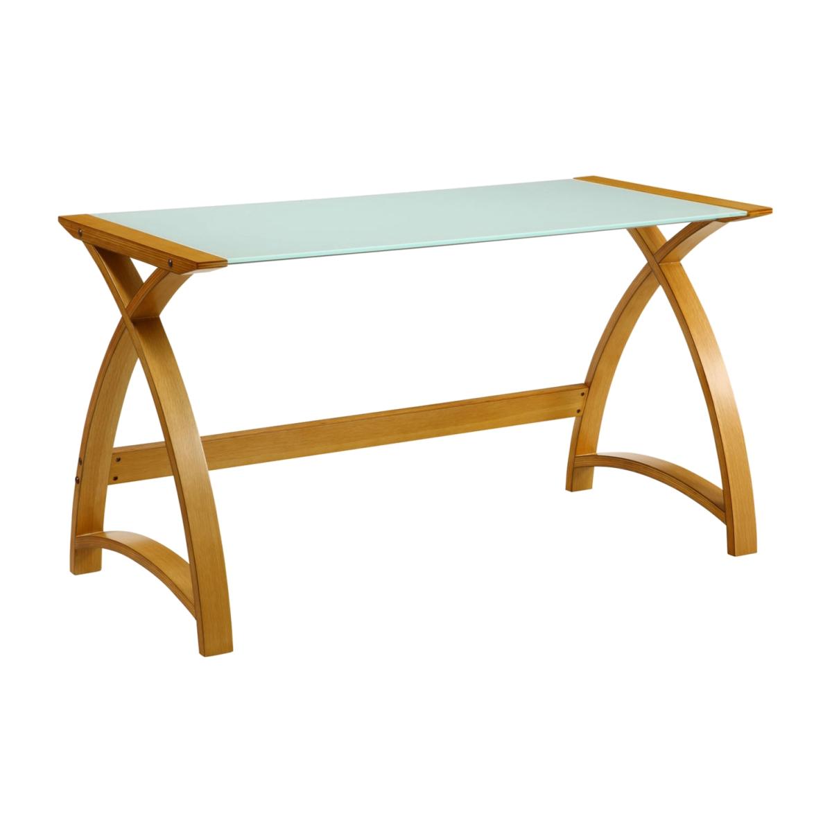 Work, study and play in style with this impressive and contemporary laptop table, with sweeping curved legs and a smart, flat glass table top. An elegant blend of modern and traditional styles, the curved design oozes style and sophistication while the wood effect finish boasts a touch of antiquated design; a gorgeously stylish combination. The real wood veneers add a professional-looking finishing touch to a desk which complements a professional lifestyle. The work surface is a toughened safety glass which offers you the delicate elegance of glass furniture without the worry of damaging or shattering the surface as it is strengthened and tempered by design. Who wants to work at a messy desk? An accompanying modesty panel can be easily installed in order to hide away the ugliness of cables, wires and plugs in order to keep your work area neat, tidy and visually impressive.