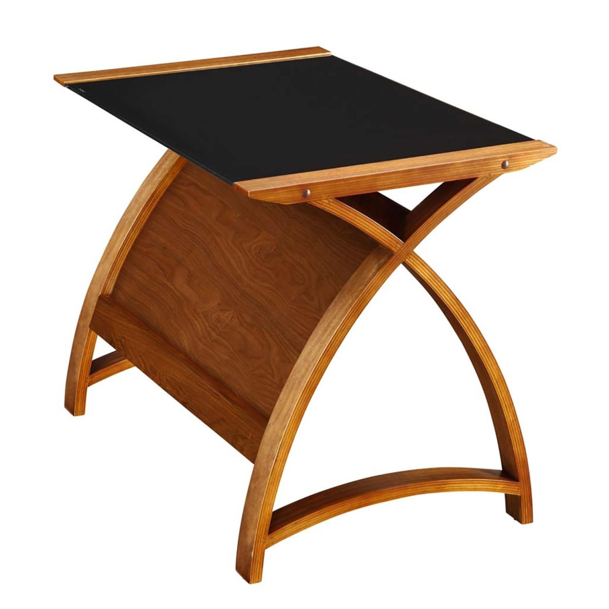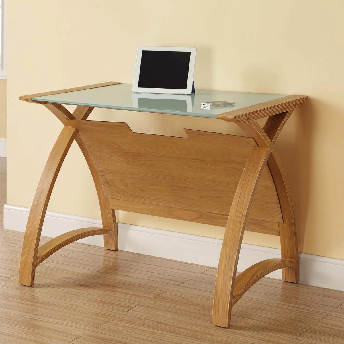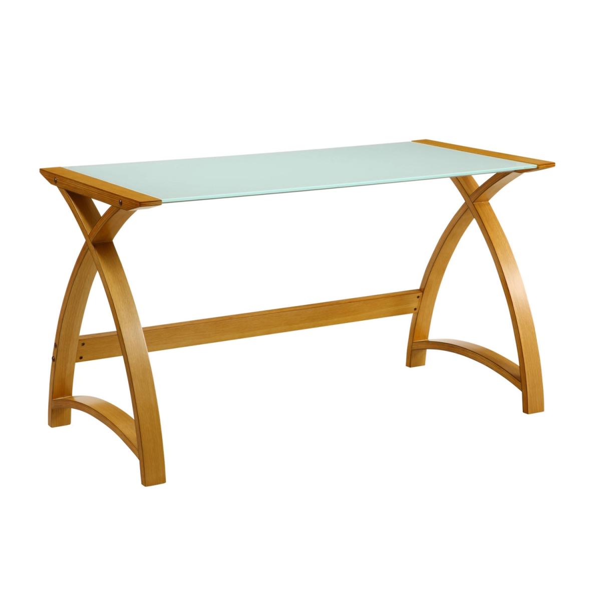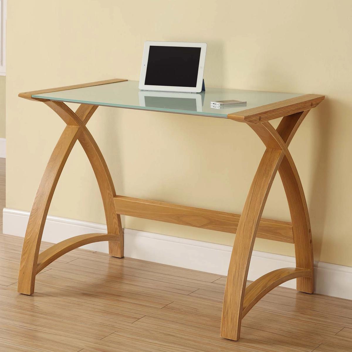 Work, study and play in style with this impressive and contemporary laptop table, with sweeping curved legs and a smart, flat glass table top. An elegant blend of modern and traditional styles, the curved design oozes style and sophistication while the wood effect finish boasts a touch of antiquated design; a gorgeously stylish combination. The real wood veneers add a professional-looking finishing touch to a desk which complements a professional lifestyle. The work surface is a toughened safety glass which offers you the delicate elegance of glass furniture without the worry of damaging or shattering the surface as it is strengthened and tempered by design. Who wants to work at a messy desk? An accompanying modesty panel can be easily installed in order to hide away the ugliness of cables, wires and plugs in order to keep your work area neat, tidy and visually impressive.