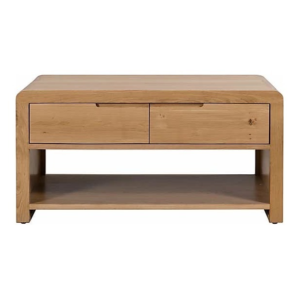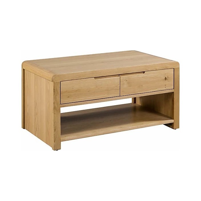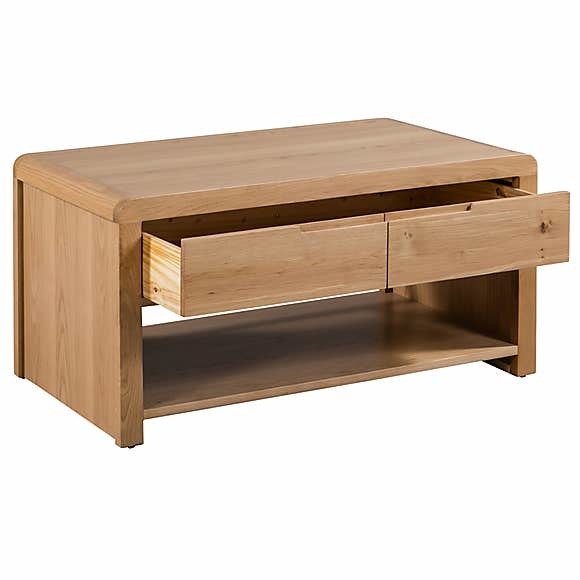 Crafted from solid oak & oak veneers, this coffee table is the perfect combination of classic and contemporary. With beautiful recessed handles and curved edging this coffee table is stunning. With a large top, this coffee table is perfect for displaying magazines, flowers or holding cups and plates.