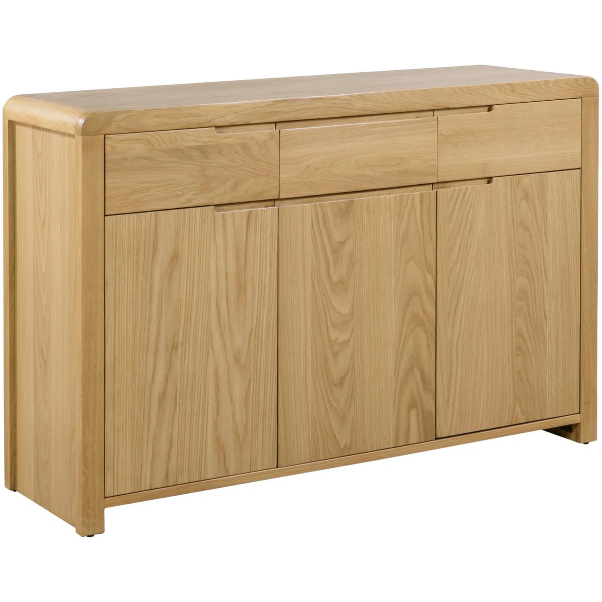 Crafted from solid oak and oak veneers, the Curve combines clean lines with a gentle curved ediging, adding a modern, retro feel to any dining area. The Curve Sideboard provides great storage with three drawers and three doors, perfect for the kitchen, dining, or living room. Part of the Julian Bowen Curve Dining and Occaional Collection