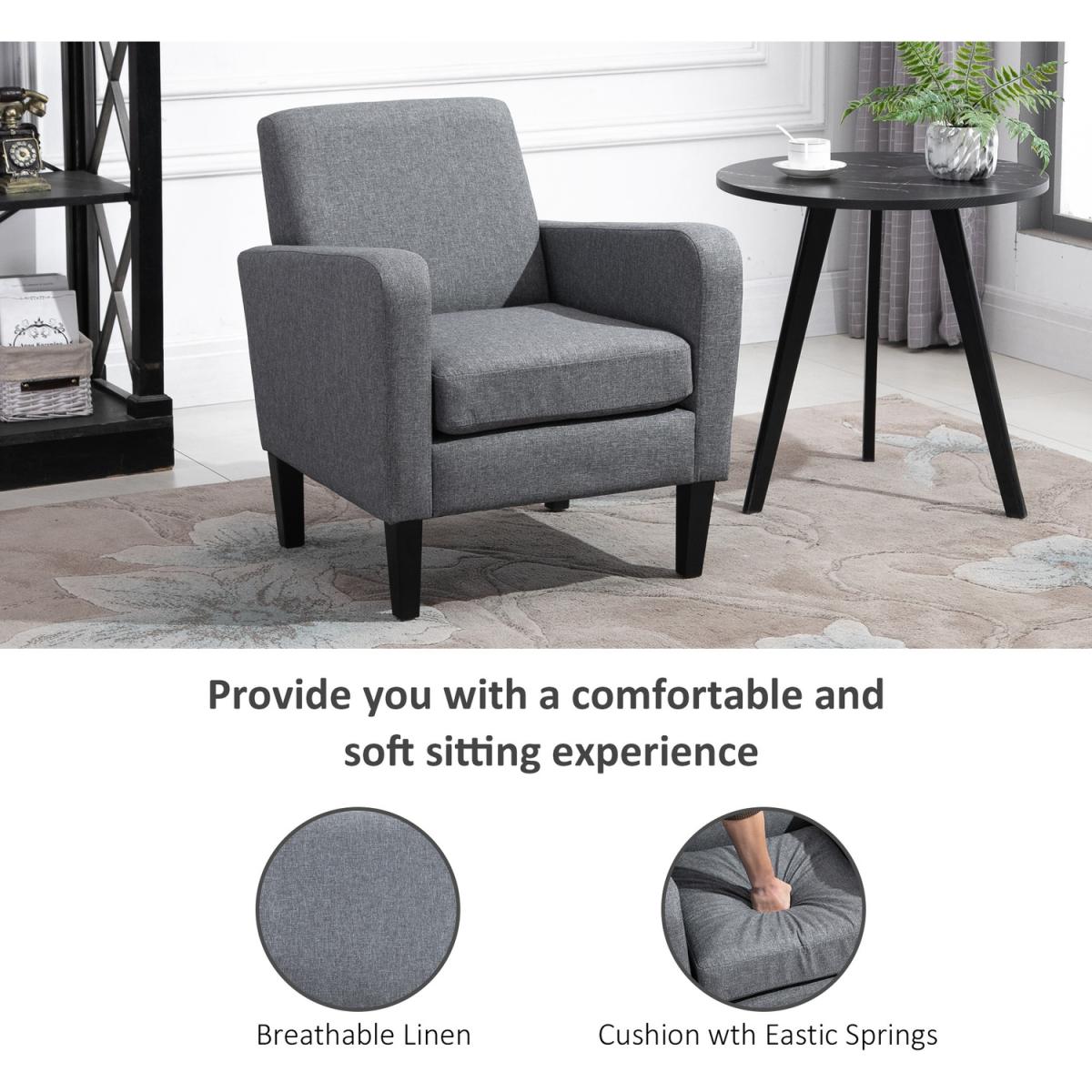 Sometimes, simple is best. And this armchair from HOMCOM doesn't come any much better than this. Taking a classic armchair shape, it's updated with a modern twist, with the tilted backrest and ultra-curved shape giving it some flair. The cushion features elastic springs will better contour and fit your body to provide a comfortable and relaxing sitting experience, whilst the sturdy structure provides support to your body's shape as you sit. It's finished with wood legs for continual balance.