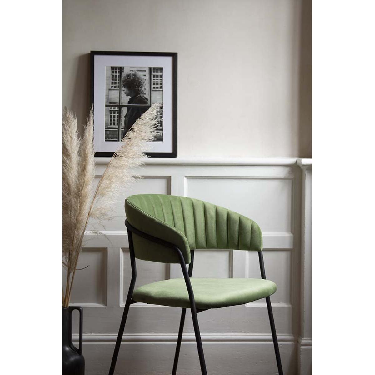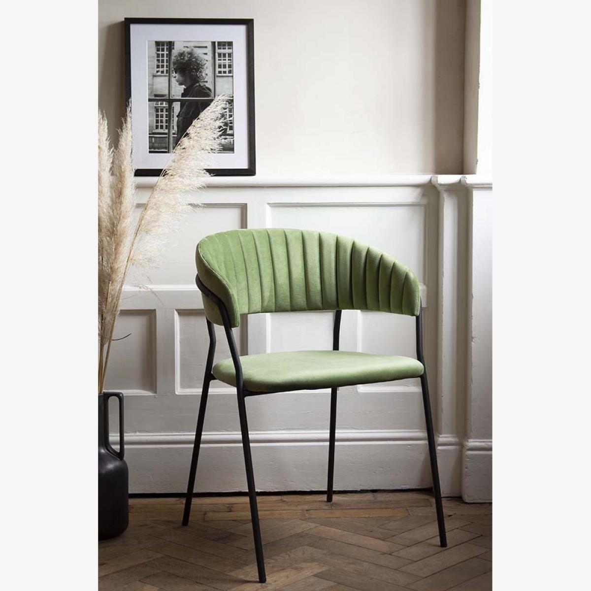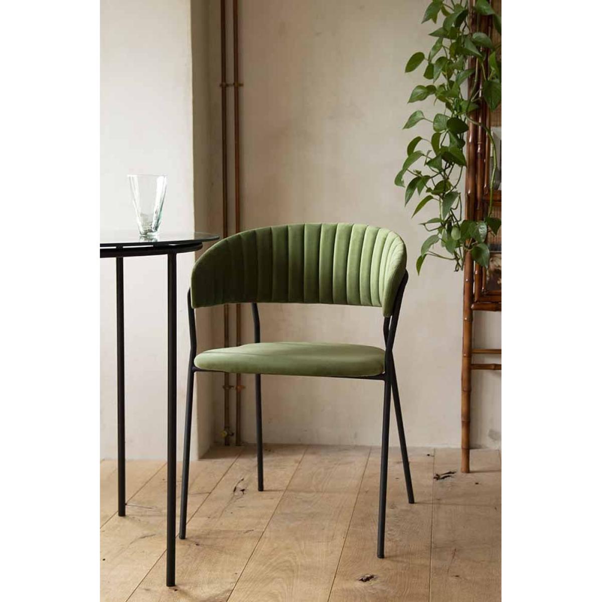 About The Curved Back Velvet Dining Chair In Moss GreenA hero piece for your dining table, the Curved Back Velvet Dining Chair in Moss Green is designed to create a chic, modern style statement in your home. With a focus on soft curved lines and elements of organic design, the bold matt black frame is paired with beautiful natural green velvet and linear design details that scream sophistication. Celebrating a versatile black and green colour palette, the Curved Back Velvet Dining Chair looks amazing in both modern Scandi schemes and quirky, eclectic interiors. Why We Think You’ll Love The Curved Velvet Dining ChairWith a chic, curved silhouette and subtle fluted velvet details, our new Curved Back Velvet Dining Chair is a real crowd-pleaser! Here’s a little insight into our inspiration…“Simple and effortlessly stylish, we were inspired by fresh evergreen leaves and vast forest scenes for the Curved Back Velvet Dining Chair. For this design, we’ve chosen a calming moss green velvet that introduces a touch of luxury, whilst creating a restorative environment with a continued connection to mother nature herself. Embracing everything that green has to offer, the beautiful leafy green velvet taps into the natural world with feelings of calm, balance and tranquillity.” Jane RockettWe’re a little in love with the Curved Back Velvet Dining Chair for its effortlessly elegant design and calming pale green palette and have a feeling you will be too!Where To Style The Green Velvet Upholstered Dining ChairGreen is fabulously versatile and perfect for energising busy areas or creating a sense of respite in your home so feel free to introduce the Curved Back Dining Chair In Moss Green anywhere from your kitchen to the office, laid back living spaces or even the bedroom.