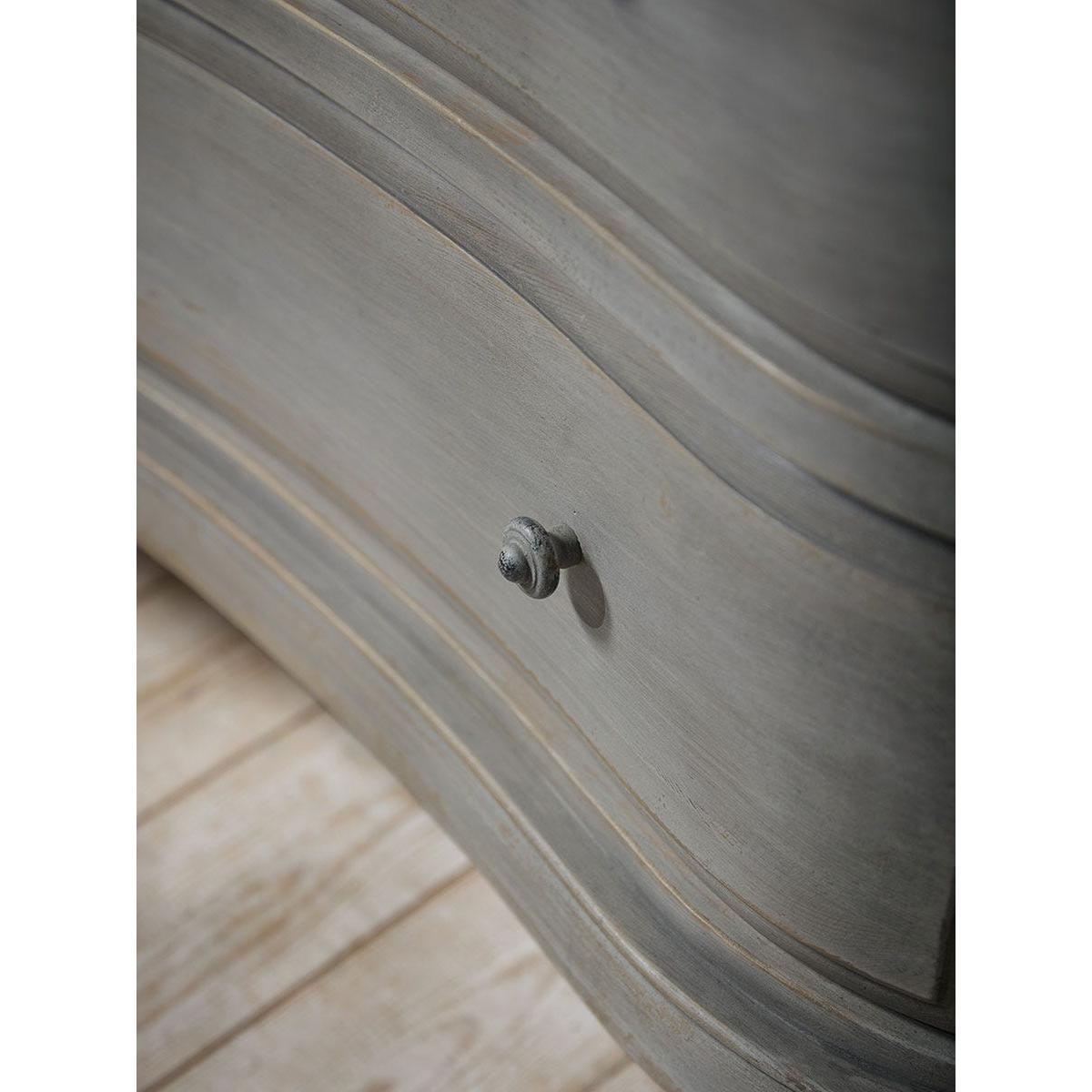 I really like this curvy chest of drawers for its classic yet understated charm. It works beautifully in both traditional and modern interiors, thanks to its soft silhouette and neutral finish. For styling, I’d suggest pairing it with vintage accessories or contemporary hardware to add personal character. It’s a practical piece for bedrooms or living rooms, offering ample storage without overwhelming the space. To keep it looking polished, combine it with soft textiles like linen or velvet, and consider placing a statement lamp or a small plant on top to bring it to life. It’s versatile and lends itself well to layered styling, making it a useful yet elegant addition to various settings.