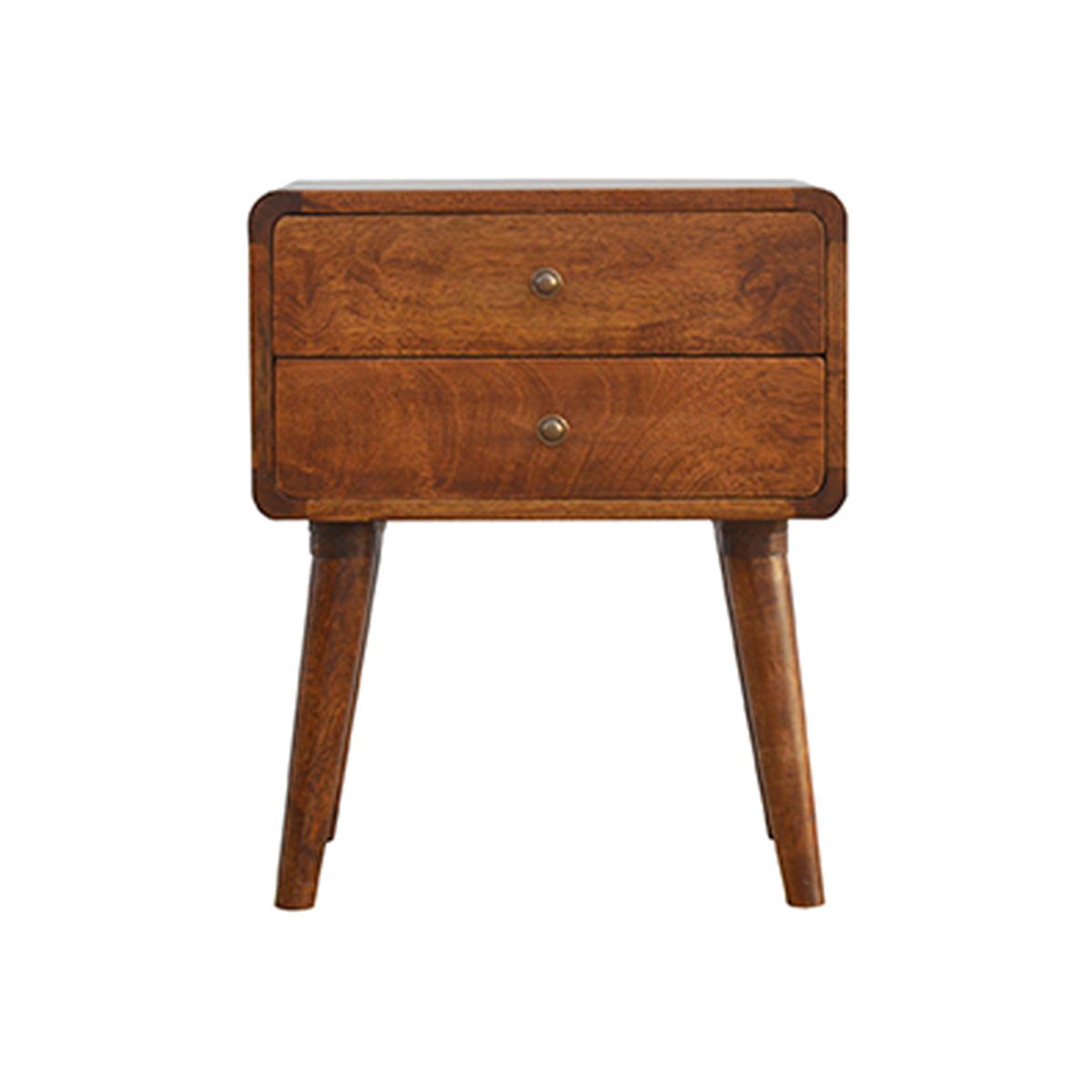 Curved Chestnut Solid Wood Bedside Table With 2 Drawer - Brown