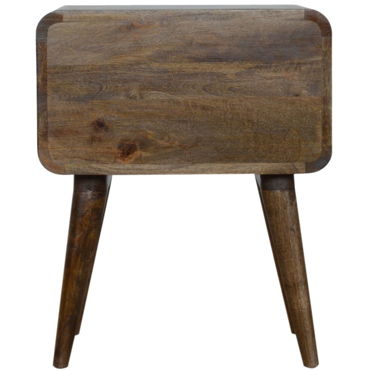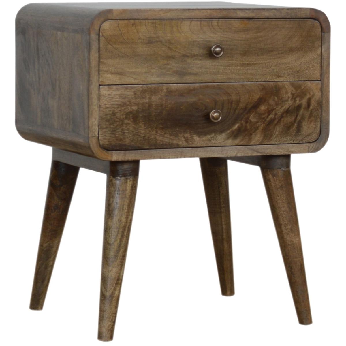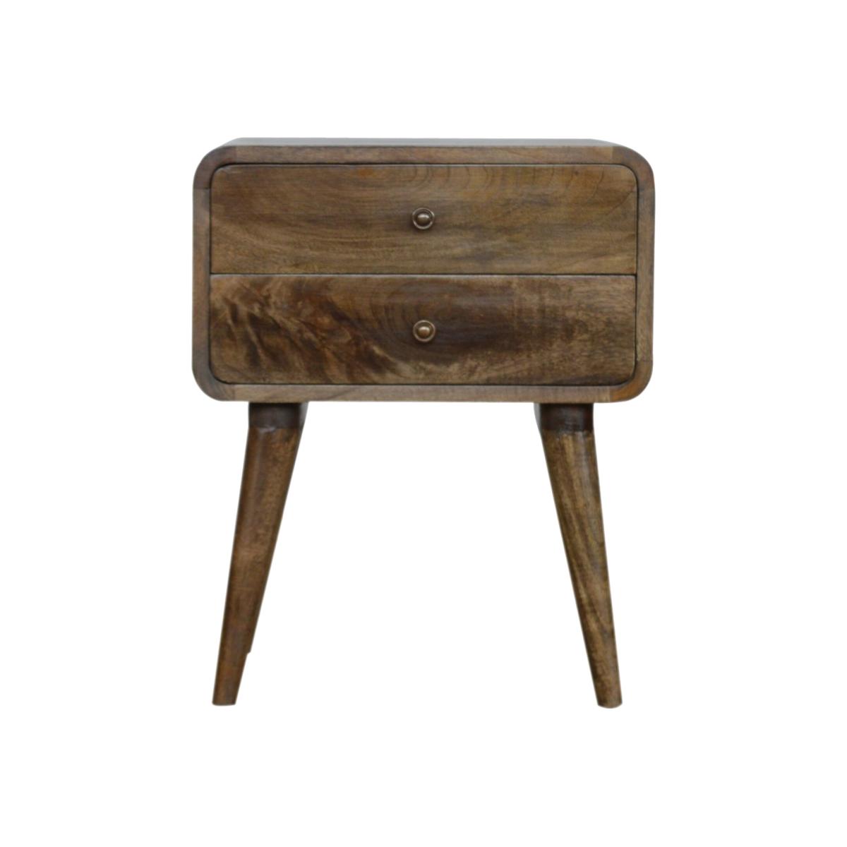 Curved Classic Grey Washed Mango Wood Bedside Table With 2 Drawer - Brown