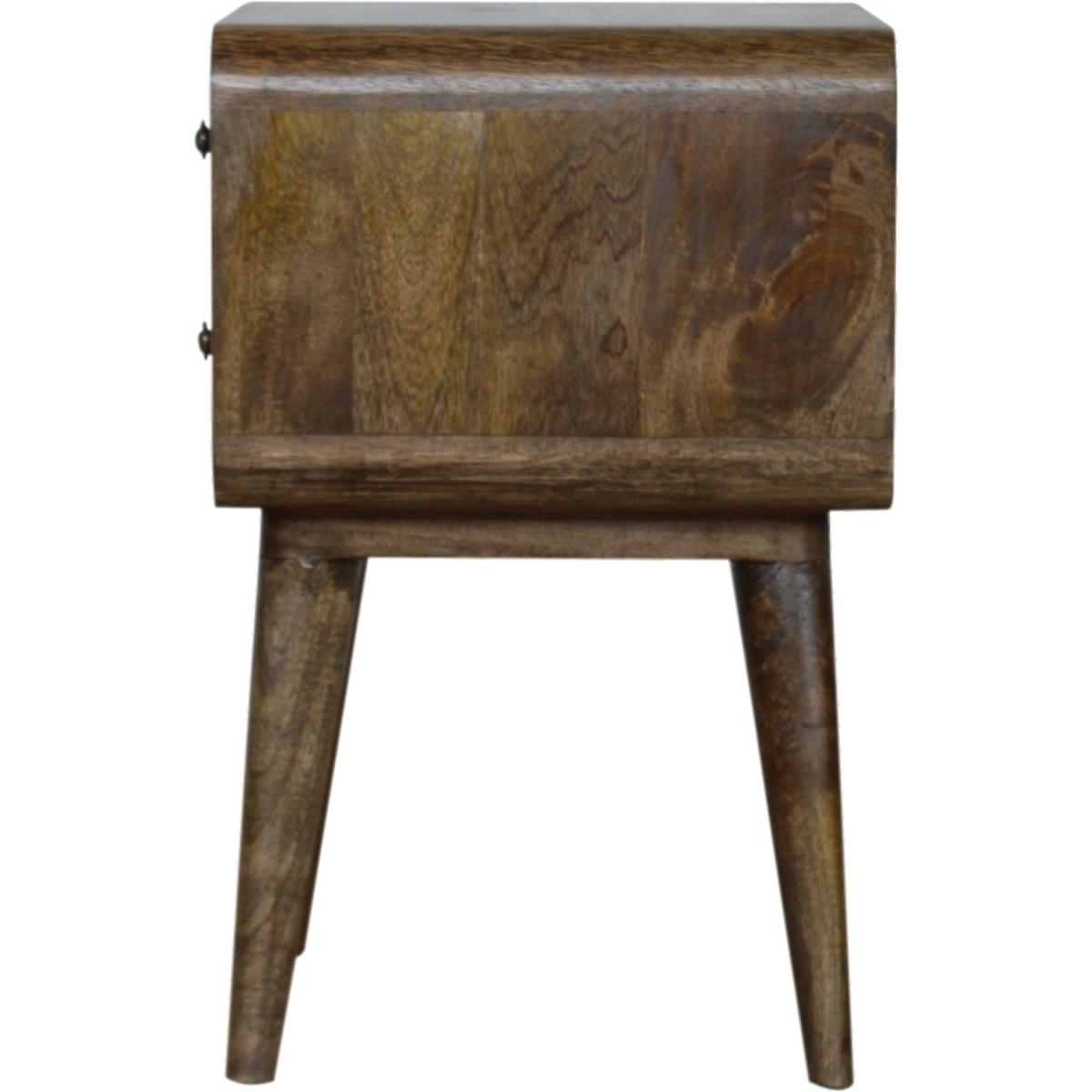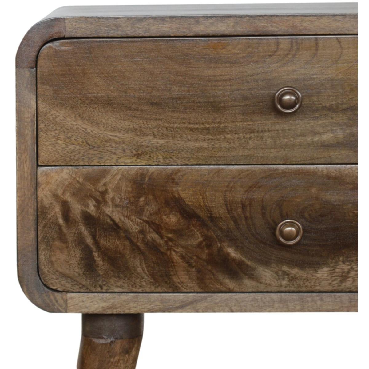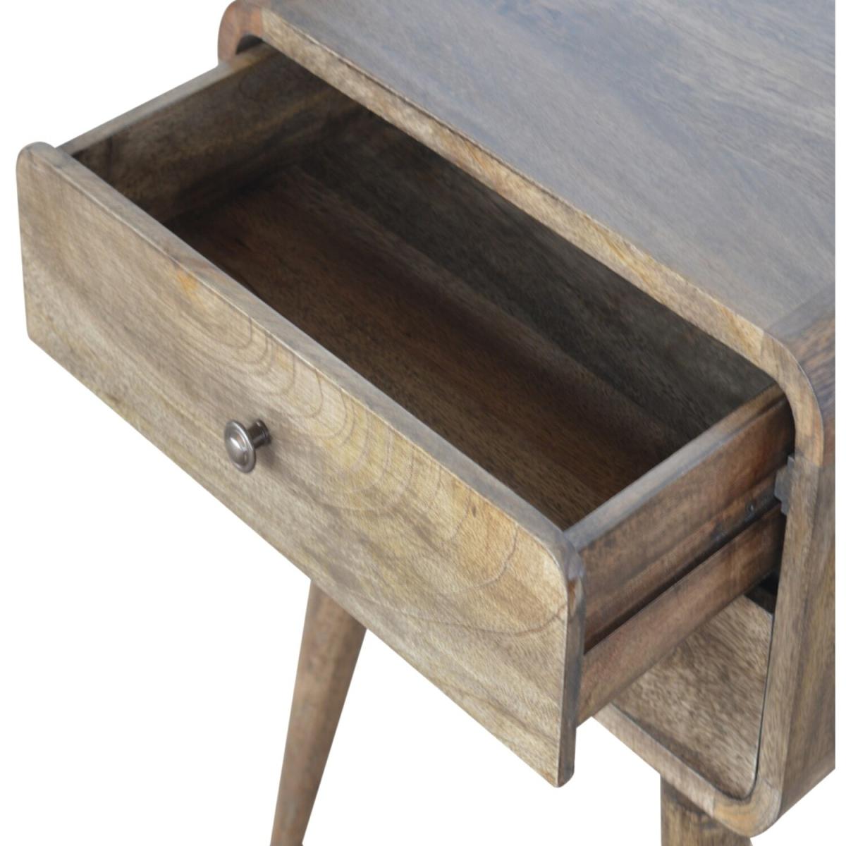 Curved Classic Grey Washed Mango Wood Bedside Table With 2 Drawer - Brown