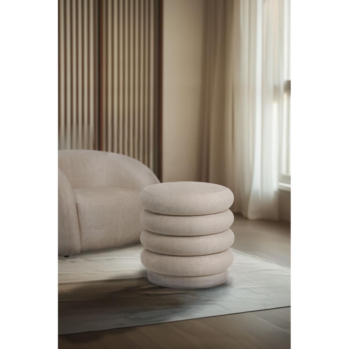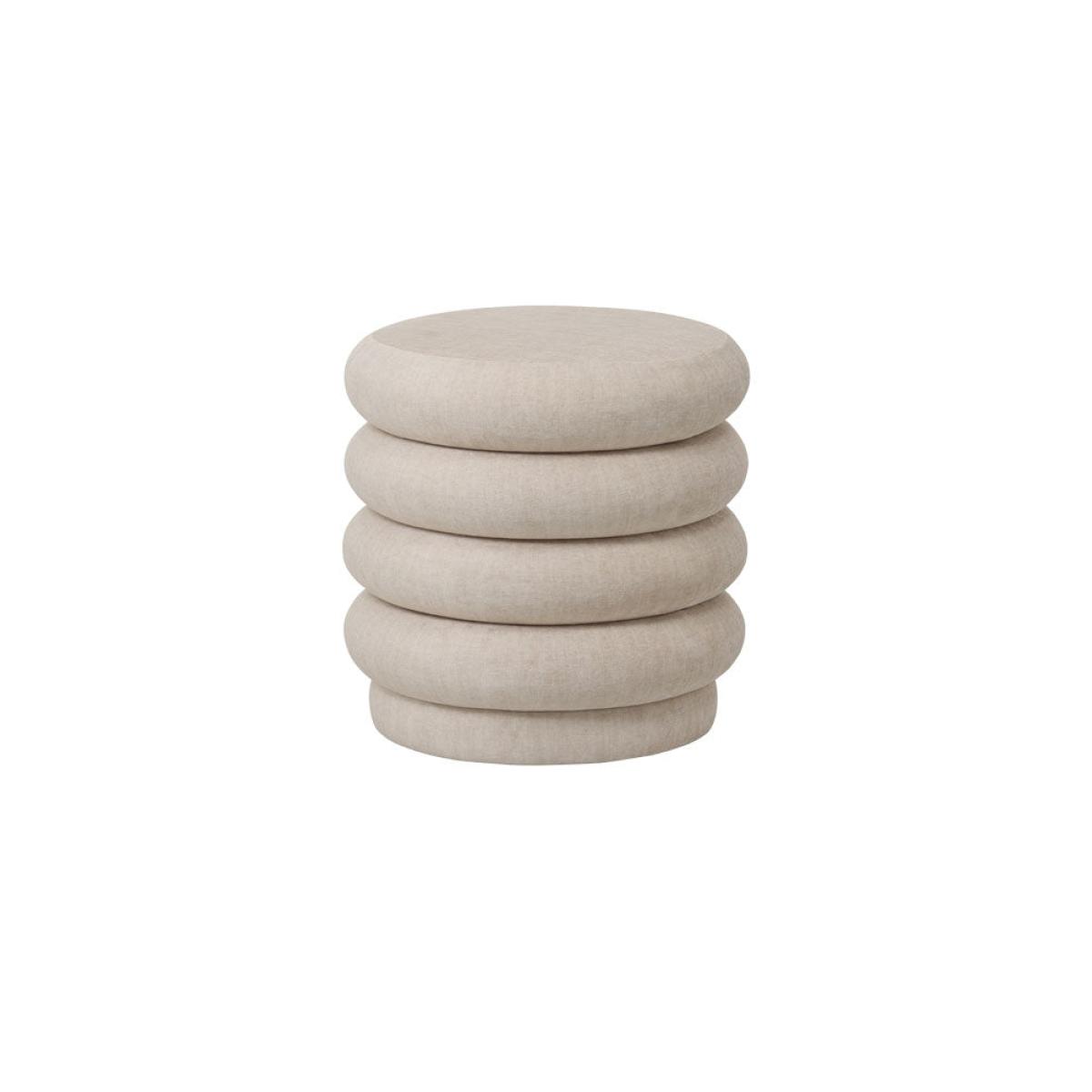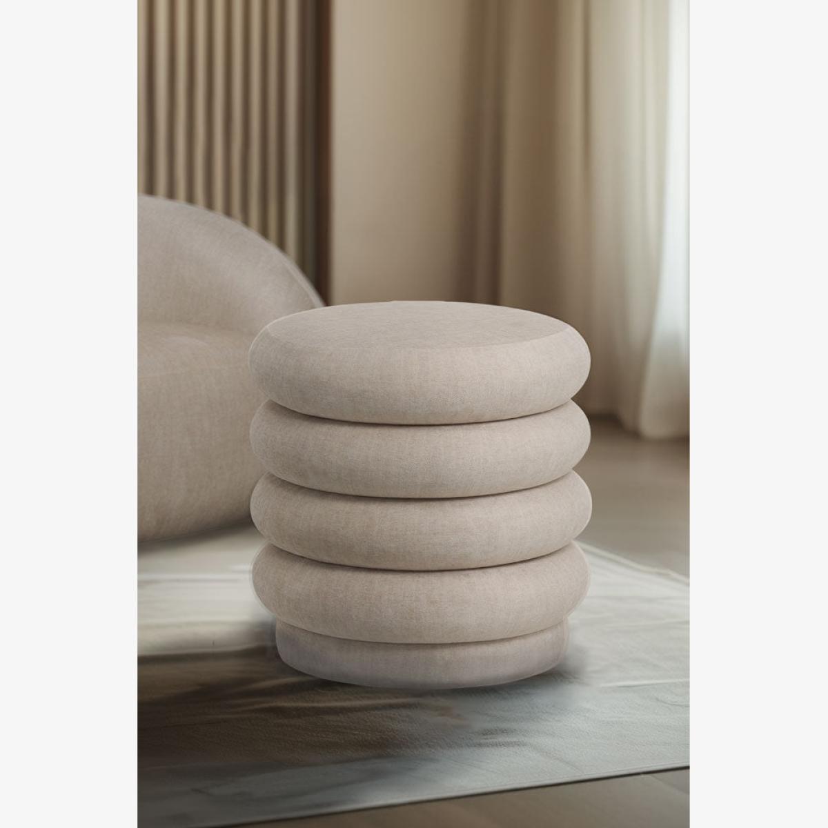 The clever design of this super-comfortable velvet footstool sees four generously-proportioned discs stacked on top of each other to create a sumptuously curvaceous piece. Crafted in the softest velvet for optimum comfort, this makes a fabulous sidekick to a matching armchair but is also bold enough to hold its own in a room, as a statement piece of glorious simplicity. Style with coffee table magazines for a pop of colour or immerse yourself fully in the creamy shades of Scandi-inspired neutrality and calm vibes this piece inspires. A quirky talking point in the making, this is a work of modern art all on its own. - Curved Cream Snug Footstool - Material: Polyester velvet - Measures: H44cm x W38cm x D38cm