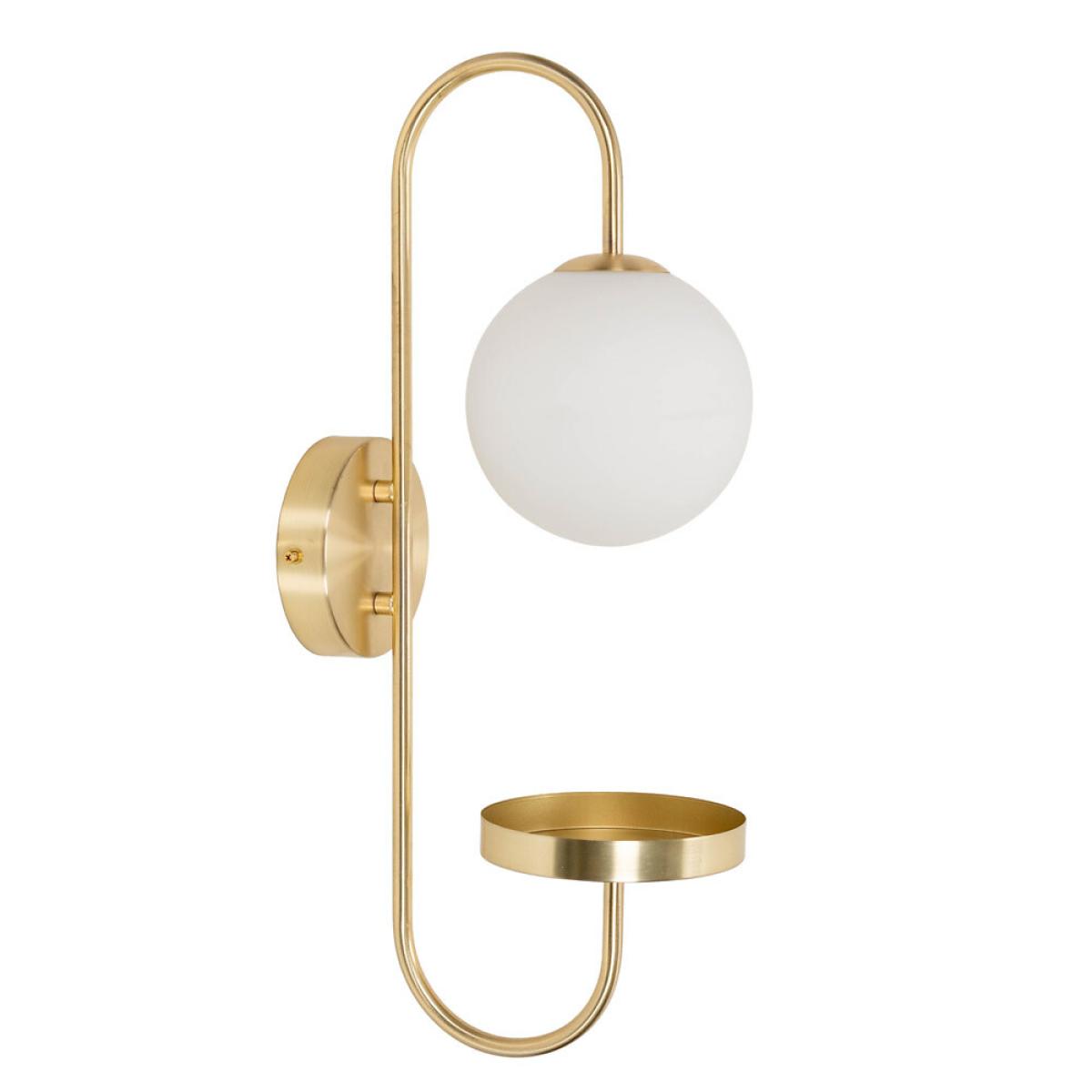 Curved Metal Wall Light with Shelf and Frosted Glass Globe Shade