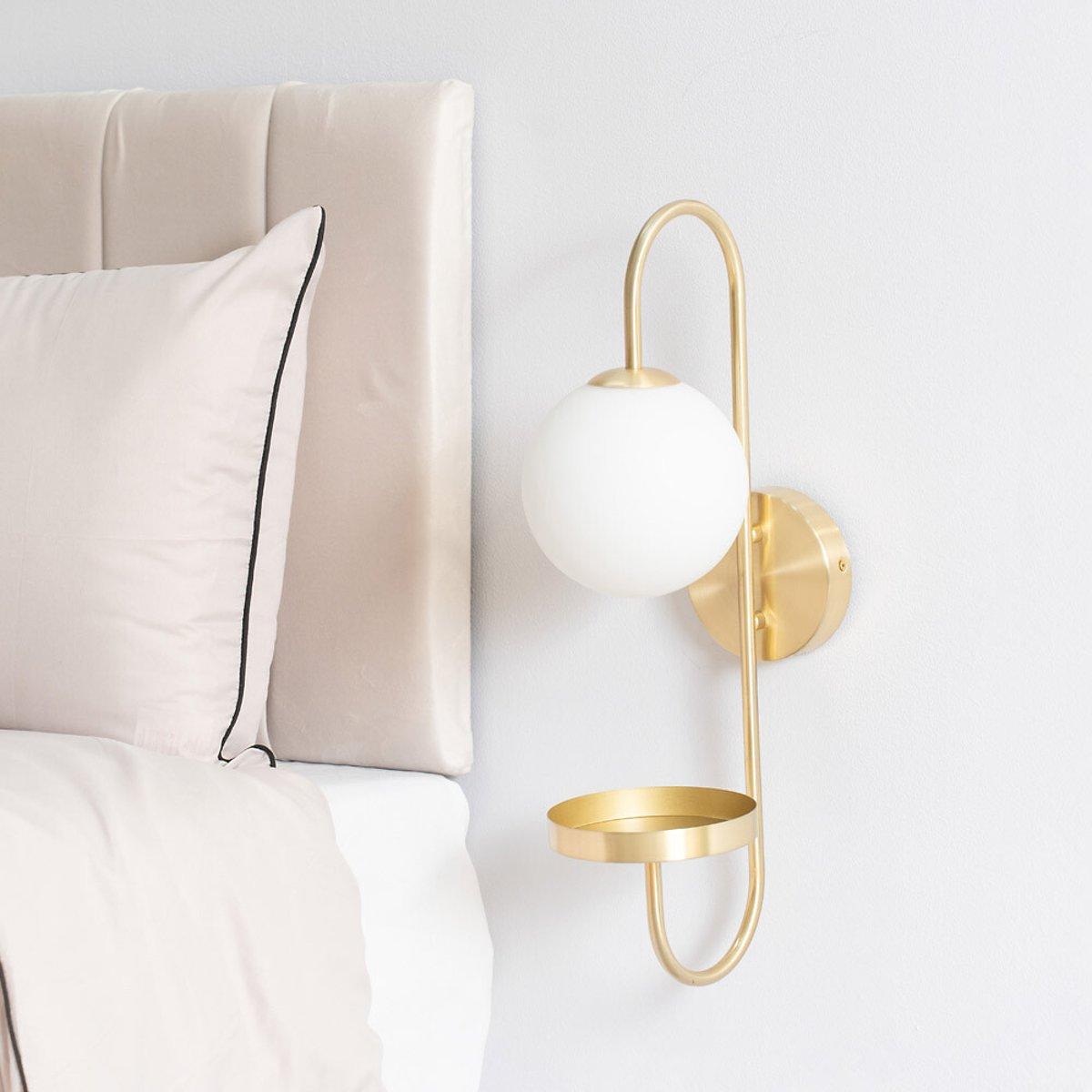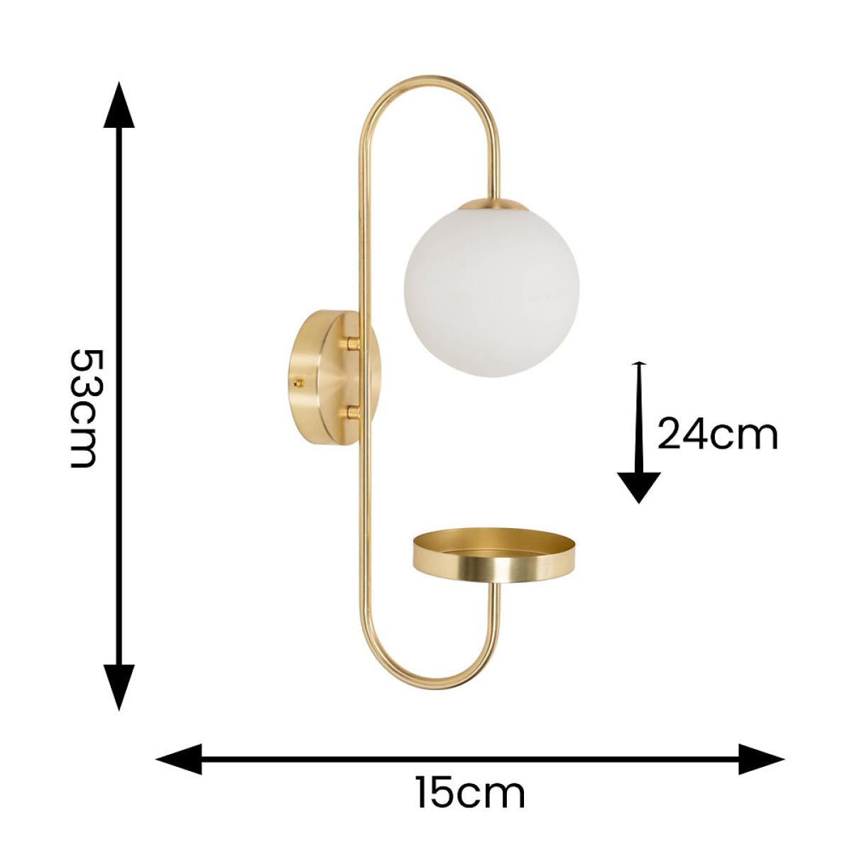 Add some flair to your space with this sleek metal globe wall light with an integrated shelf - perfect for places with limited space! Ideal for bedside use where there's no room for a table, this clever light provides a handy spot for your phone or cup of tea. The soft, cosy glow from the opaque globe adds charm to any room, while the practical shelf keeps your essentials within easy reach. Who says you can't have style and functionality in small spaces?