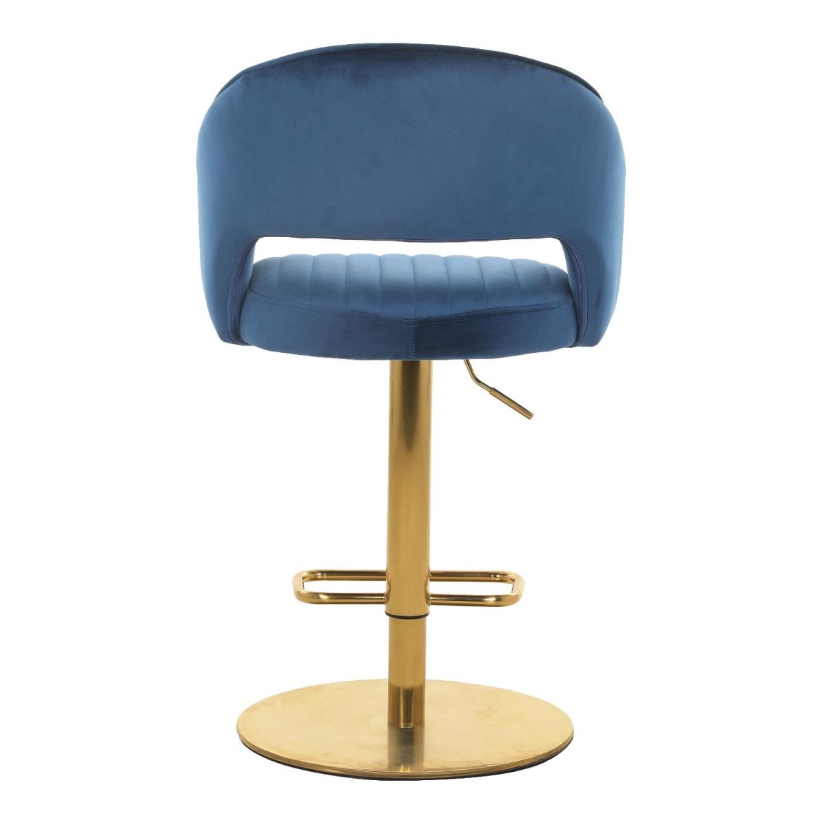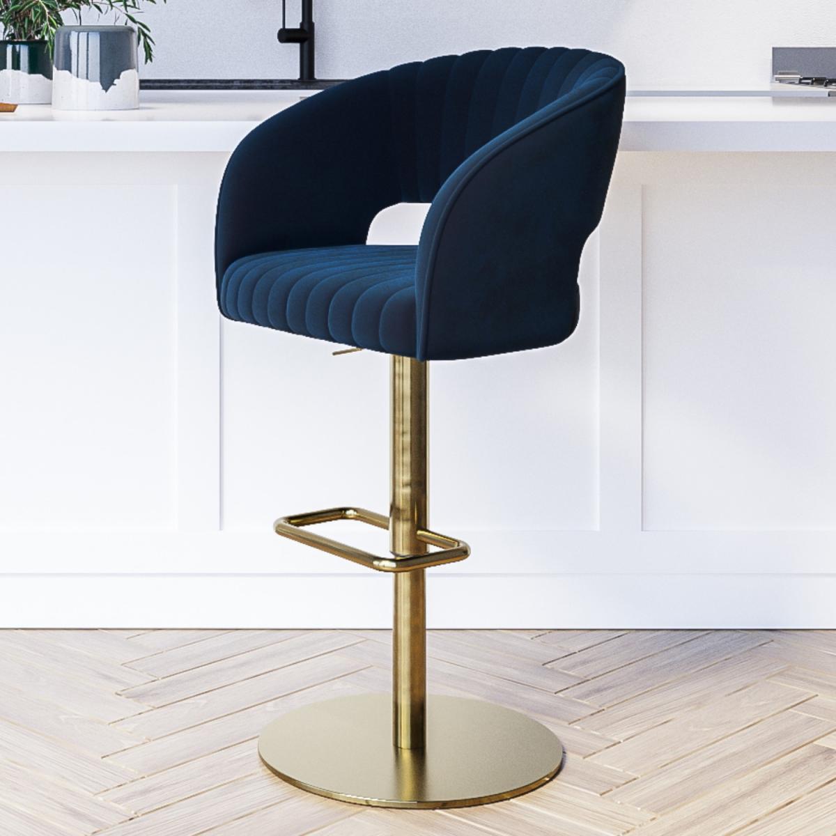 Curved Navy Velvet Adjustable Bar Stool with Back - Runa