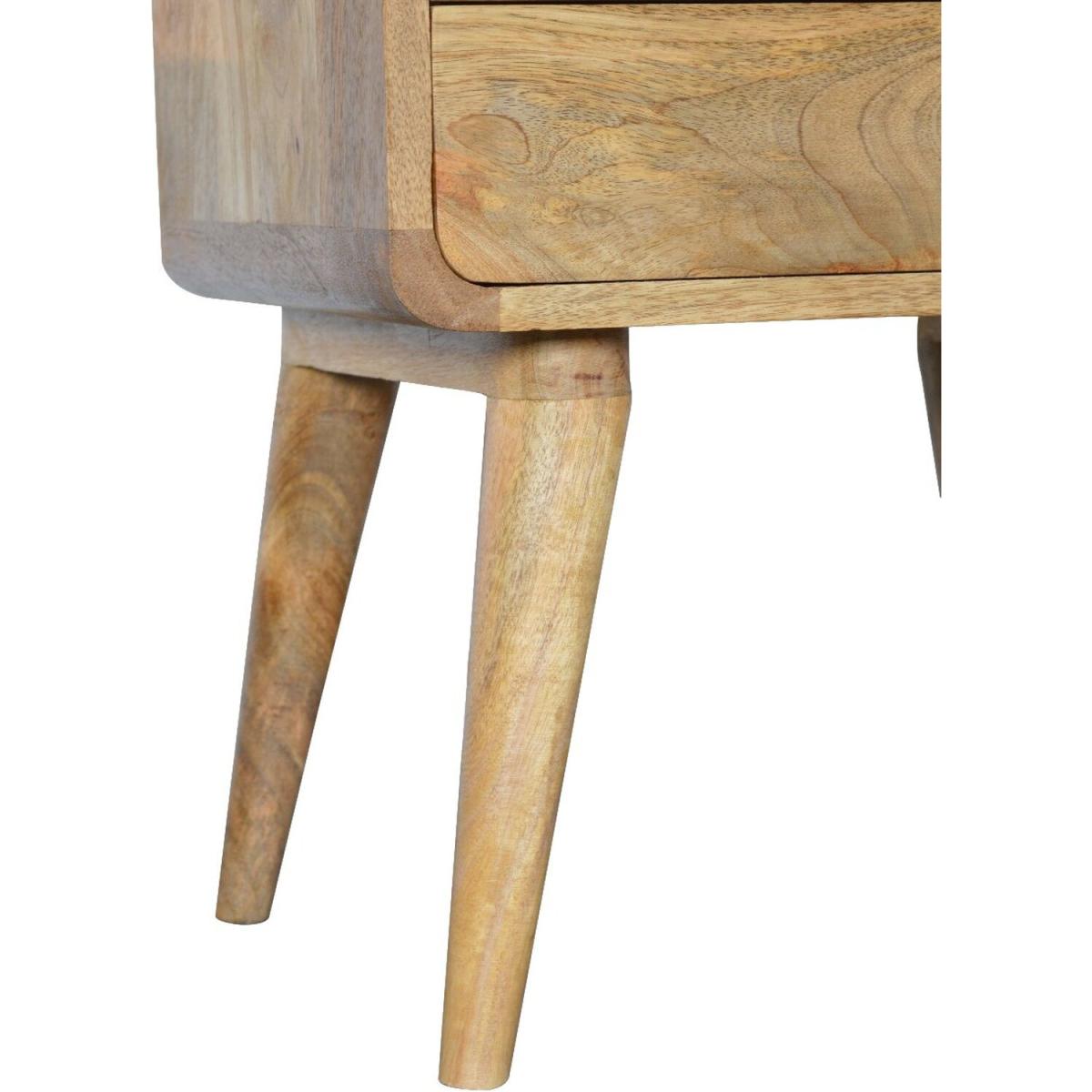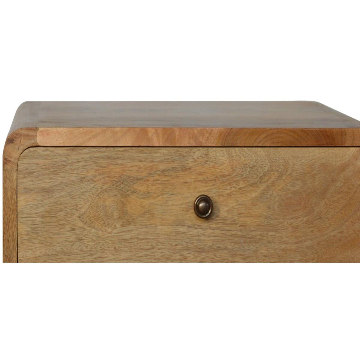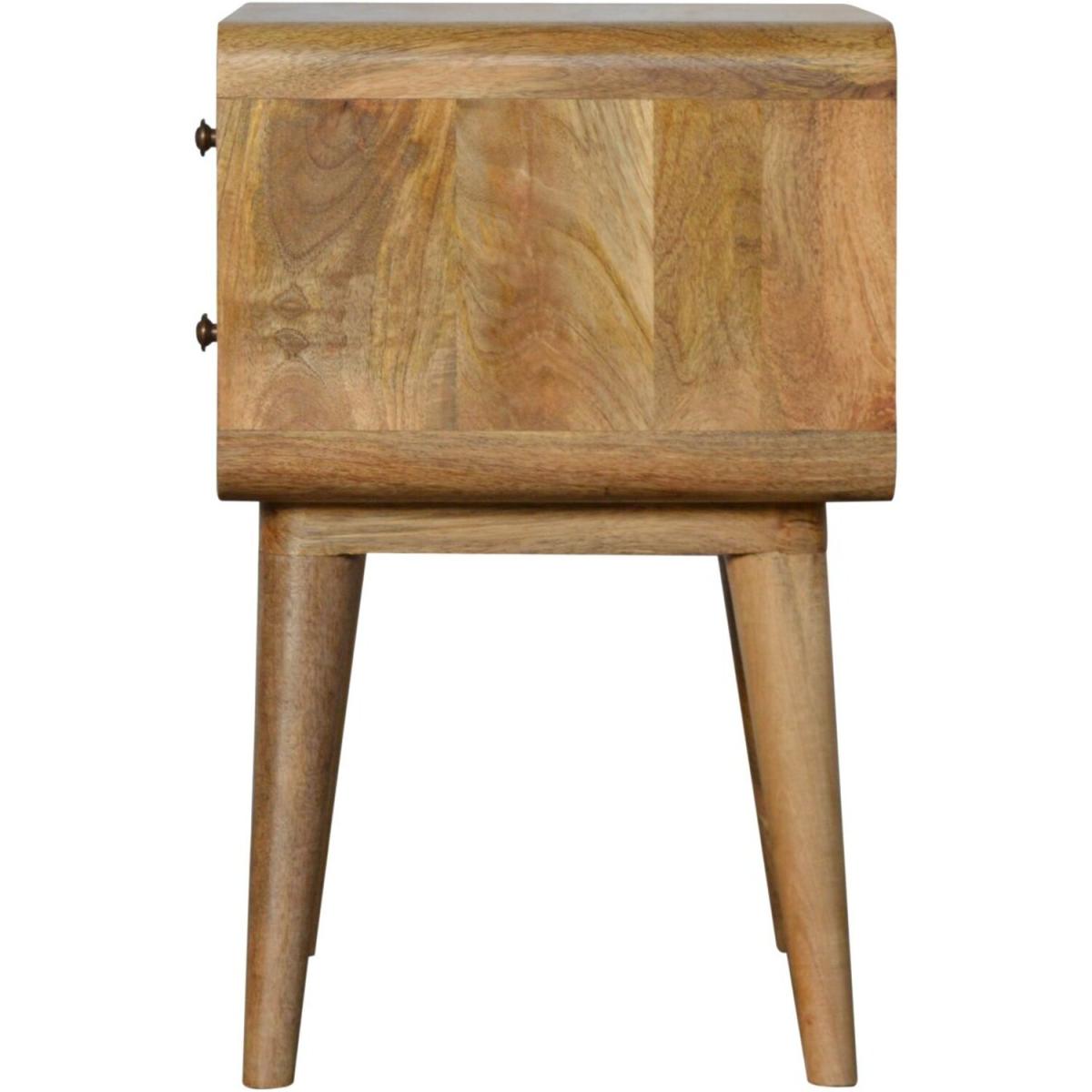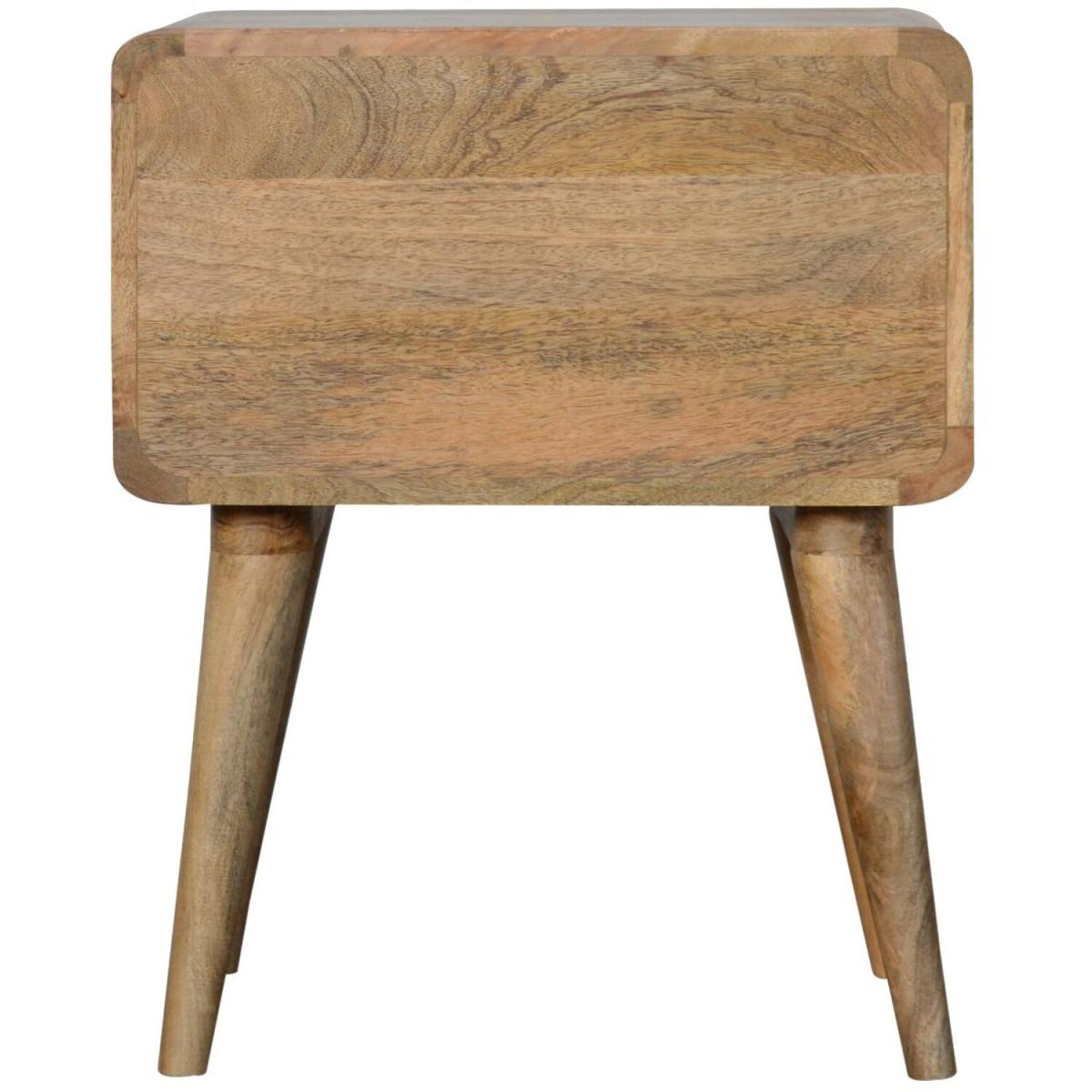 Curved Oak-Ish Mango Wood Bedside Table With 2 Storage Drawer - Brown
