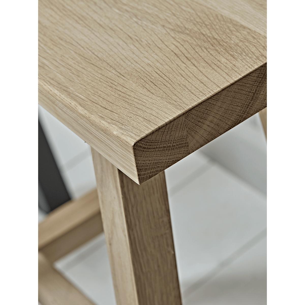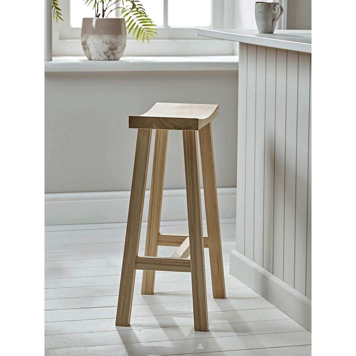 Crafted in beautifully understated raw oak, our Curved Top Stool is the perfect seating solution for your kitchen or breakfast bar. The gently curved seat, four sturdy legs and foot rest provide the ultimate in breakfast time comfort, and the untreated, natural finish of the oak helps to create a light an airy feel in your kitchen.