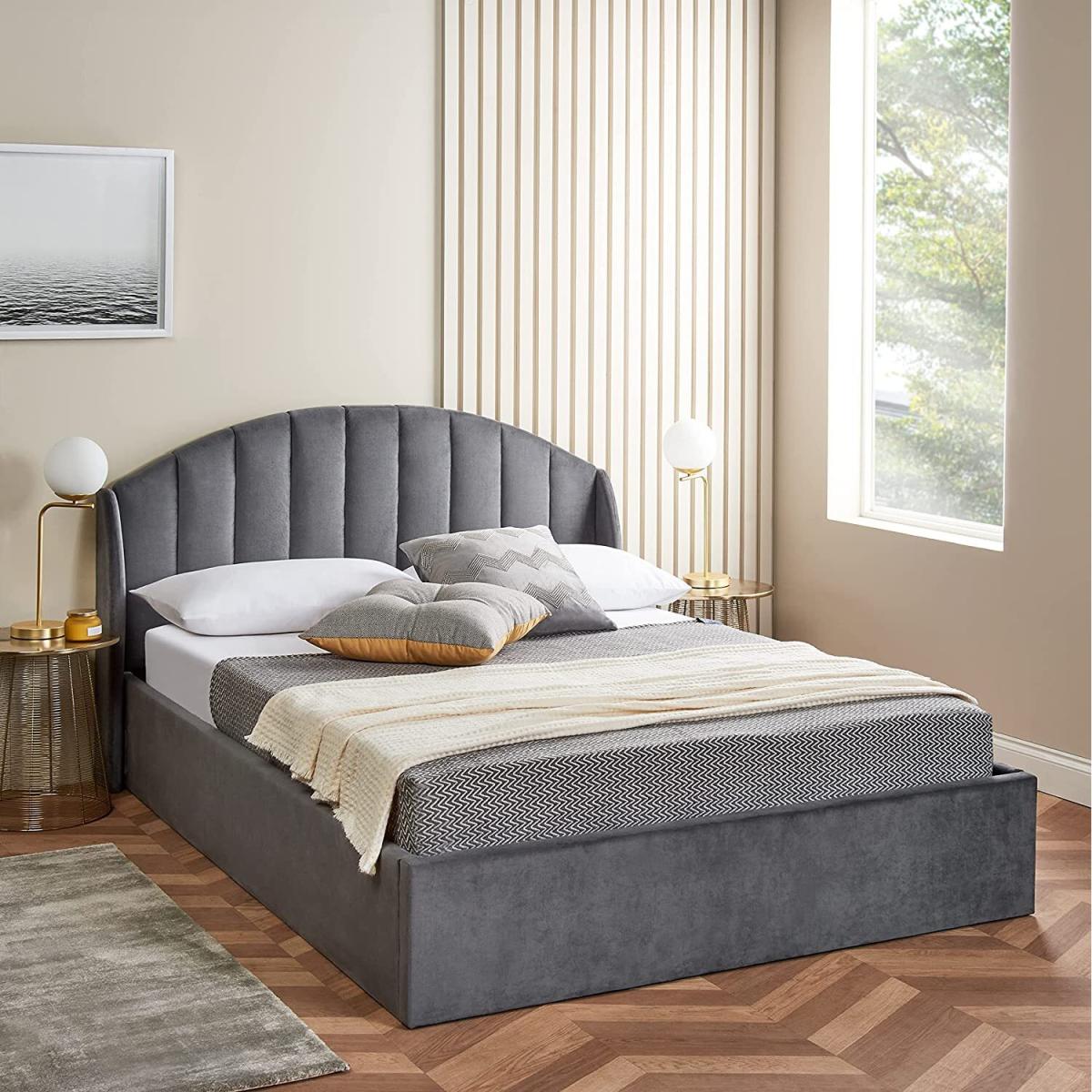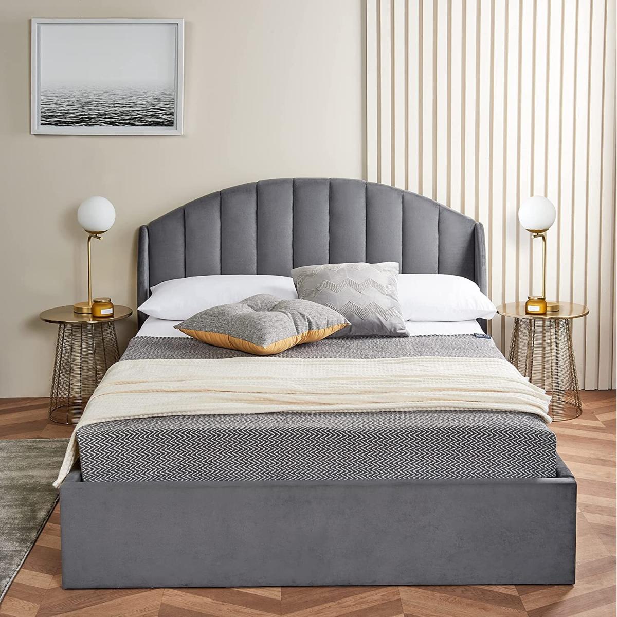 Curved Velvet Winged Storage Ottoman Bed - Grey / Yes / Single