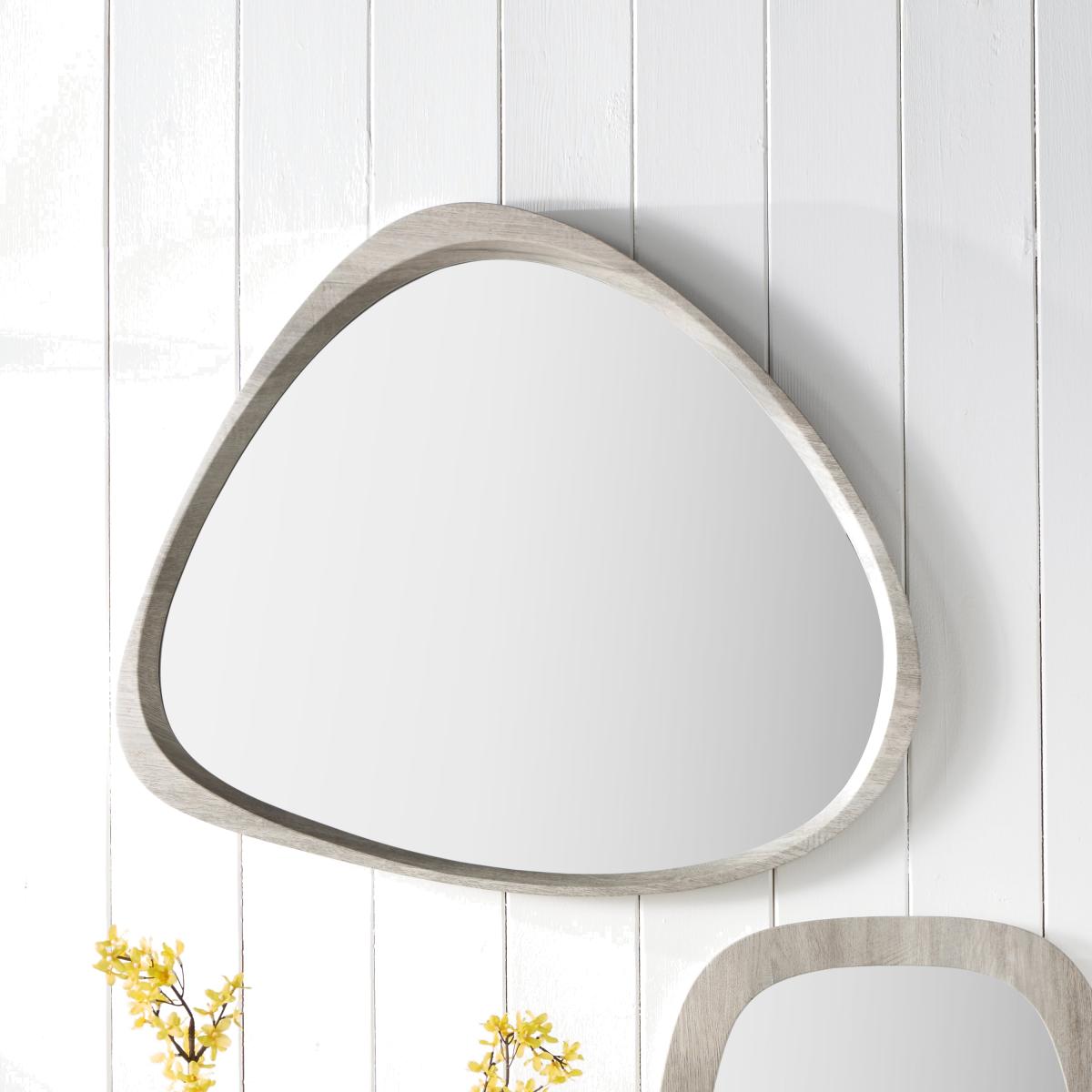 Put a twist on your basic wall décor with the Curved Wall Mirror in an irregular curved shape, bringing shape and flexibility to your blank walls. With a modern grey oak colour, paired with a wood veneer finish frame, this piece will sit perfectly in a spare room, small bathroom or utility room and features integrated hangers on the reverse for easy fitting.