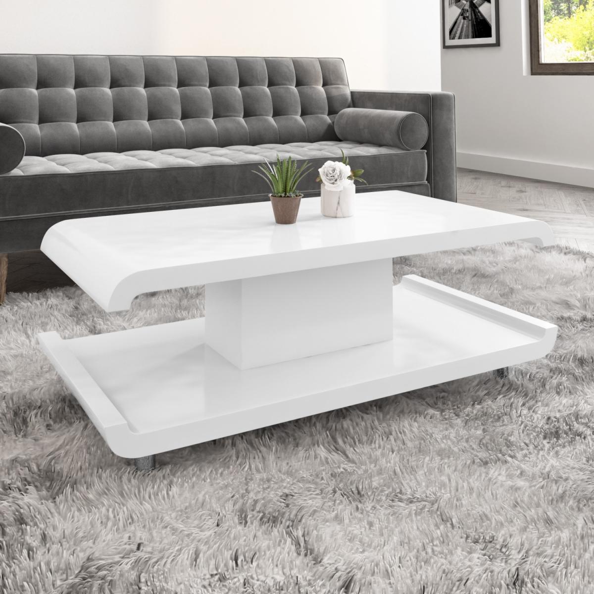 This Tiffany coffee table has a unique style all of its own. With two layers of seamless surface space there's plenty of room to put your feet up and store your essentials. It has a durable wooden build that's been coated with smooth, white, high gloss, giving the table its own natural lustre, whilst also making it super easy to wipe clean.