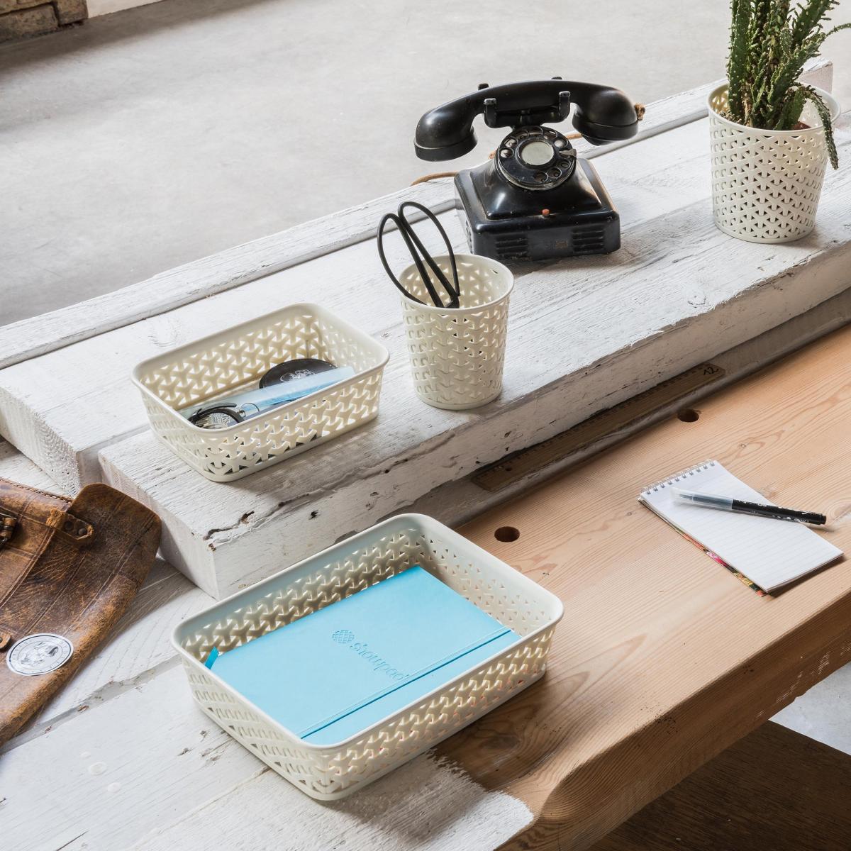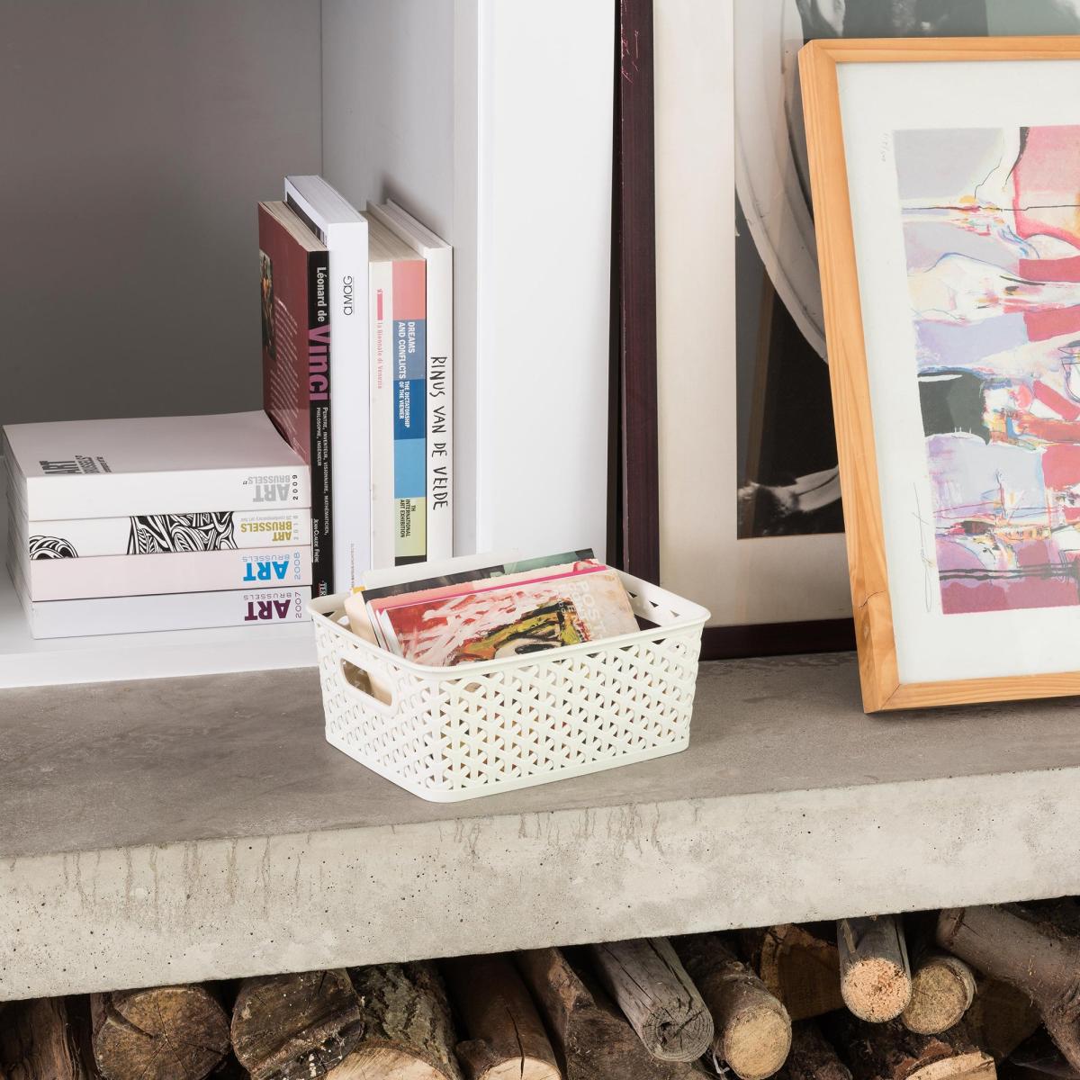 Designed with a modern interpretation of the traditional rattan fibre look, this storage basket from Curver has been crafted from durable plastic making it easy to wipe clean. Suitable for a variety of décor styles, the basket is complete with easy to carry handles.
