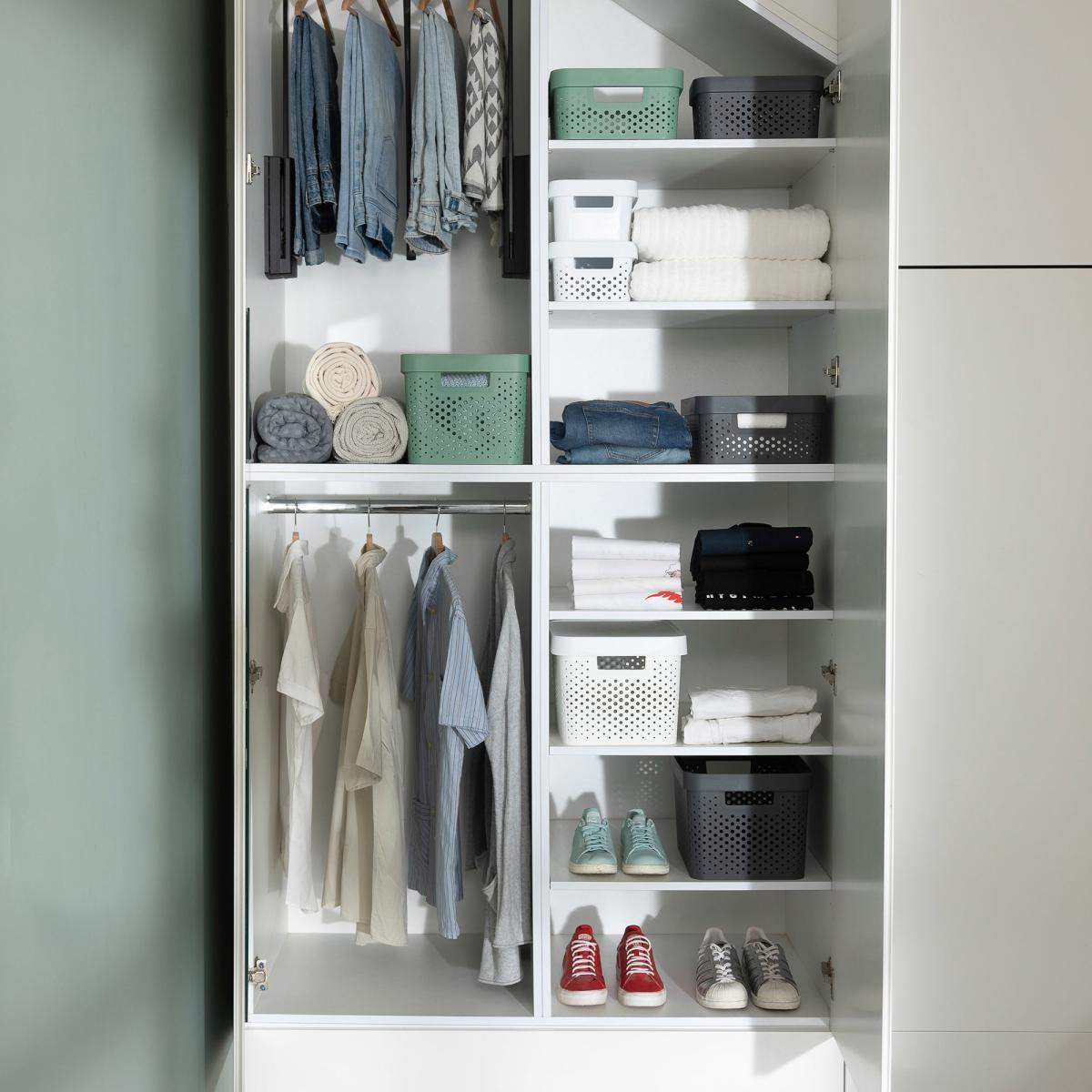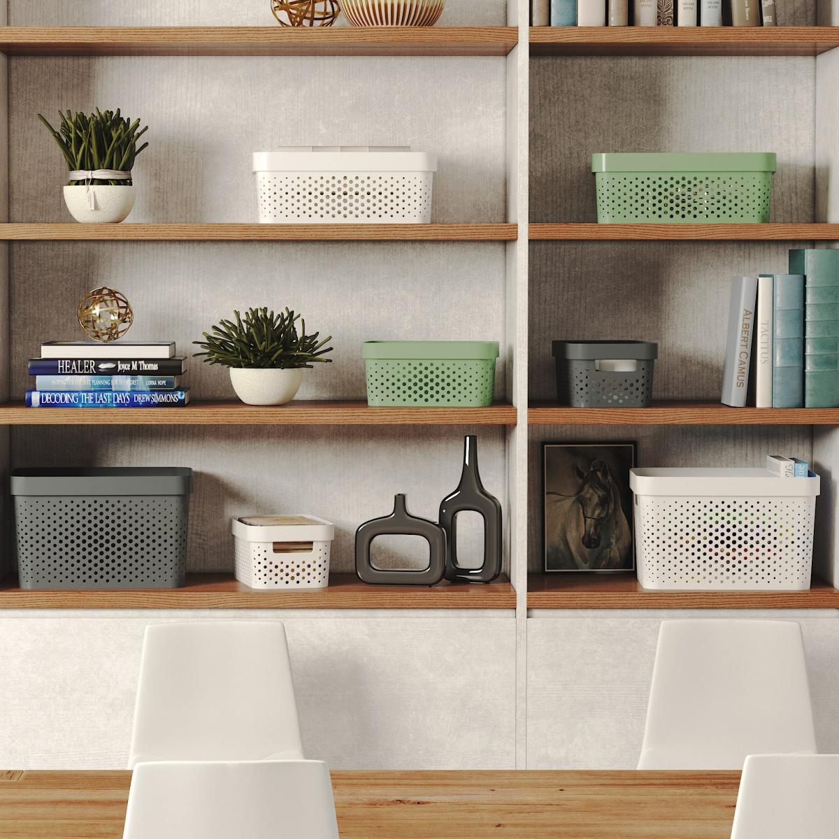 Crafted from 100% recycled plastic, these storage baskets are part of the Curver Infinity collection and available across a range of sizes for excellent space saving storage. Also available in a range of colours, these storage baskets are multifunctional and unique through their natural colours and are designed to complement any room of your home.