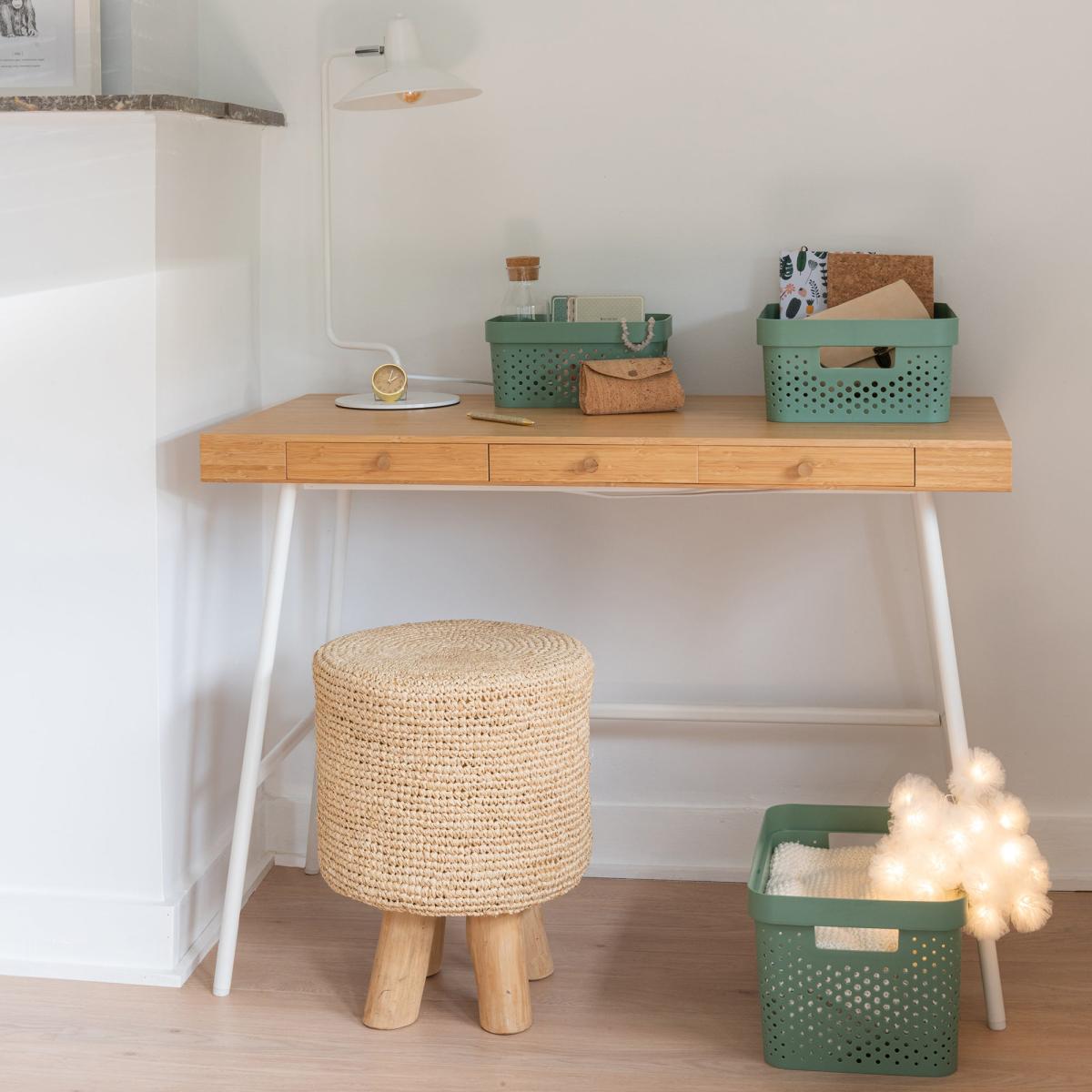 I love this basket for its versatile, eco-friendly design and practical size - perfect for both storage and decorative organisation. The green shade adds a fresh, natural touch that suits modern, minimalist schemes as well as Scandi-inspired interiors. It works well in kitchens, bathrooms, or even living rooms, helping to keep clutter hidden yet accessible. For styling, try grouping it with other textured or coloured baskets for a layered look, or use it to corral items like throws, magazines, or plants. Its recycled plastic make-up ensures durability and ease of cleaning, making it an ideal everyday storage solution without compromising on style.