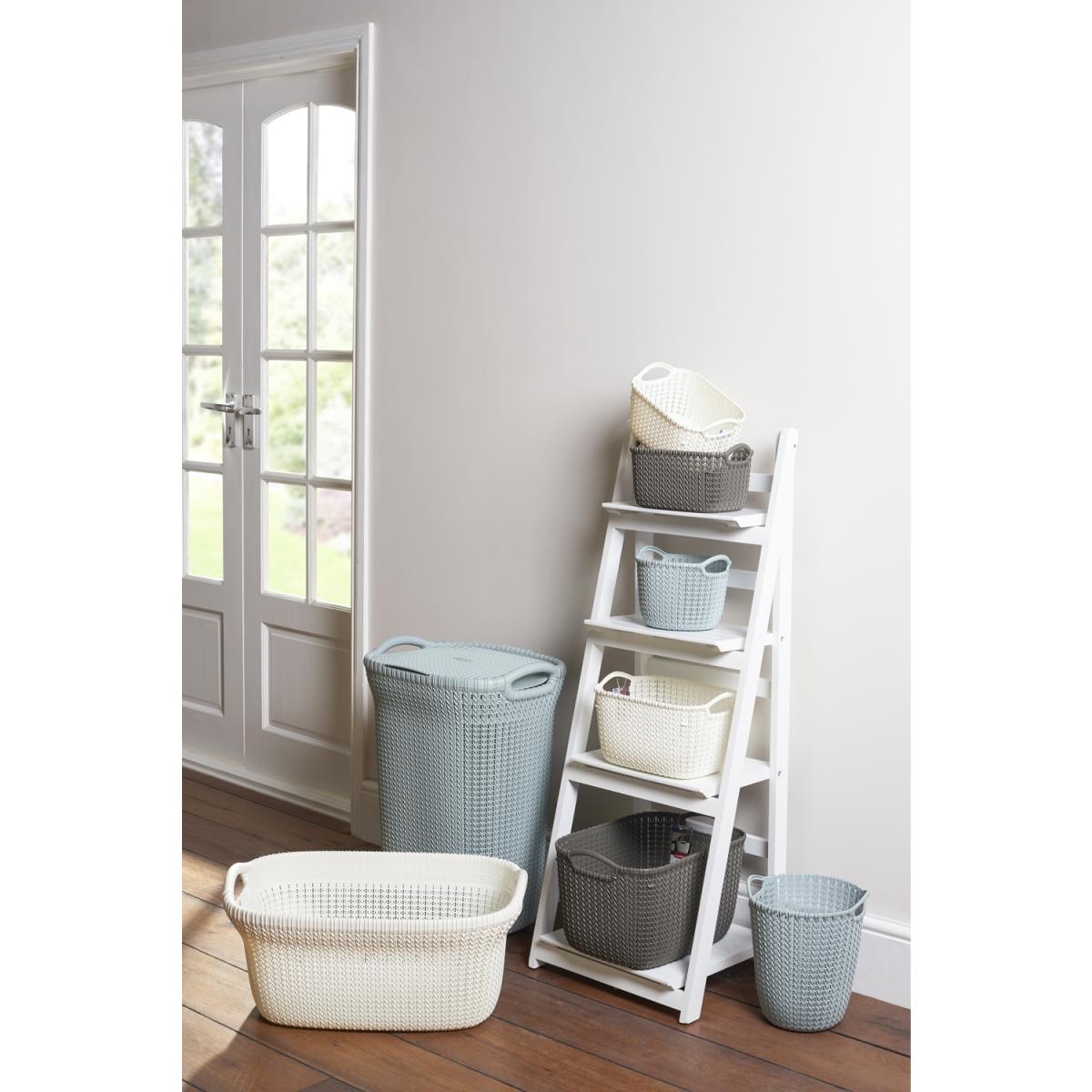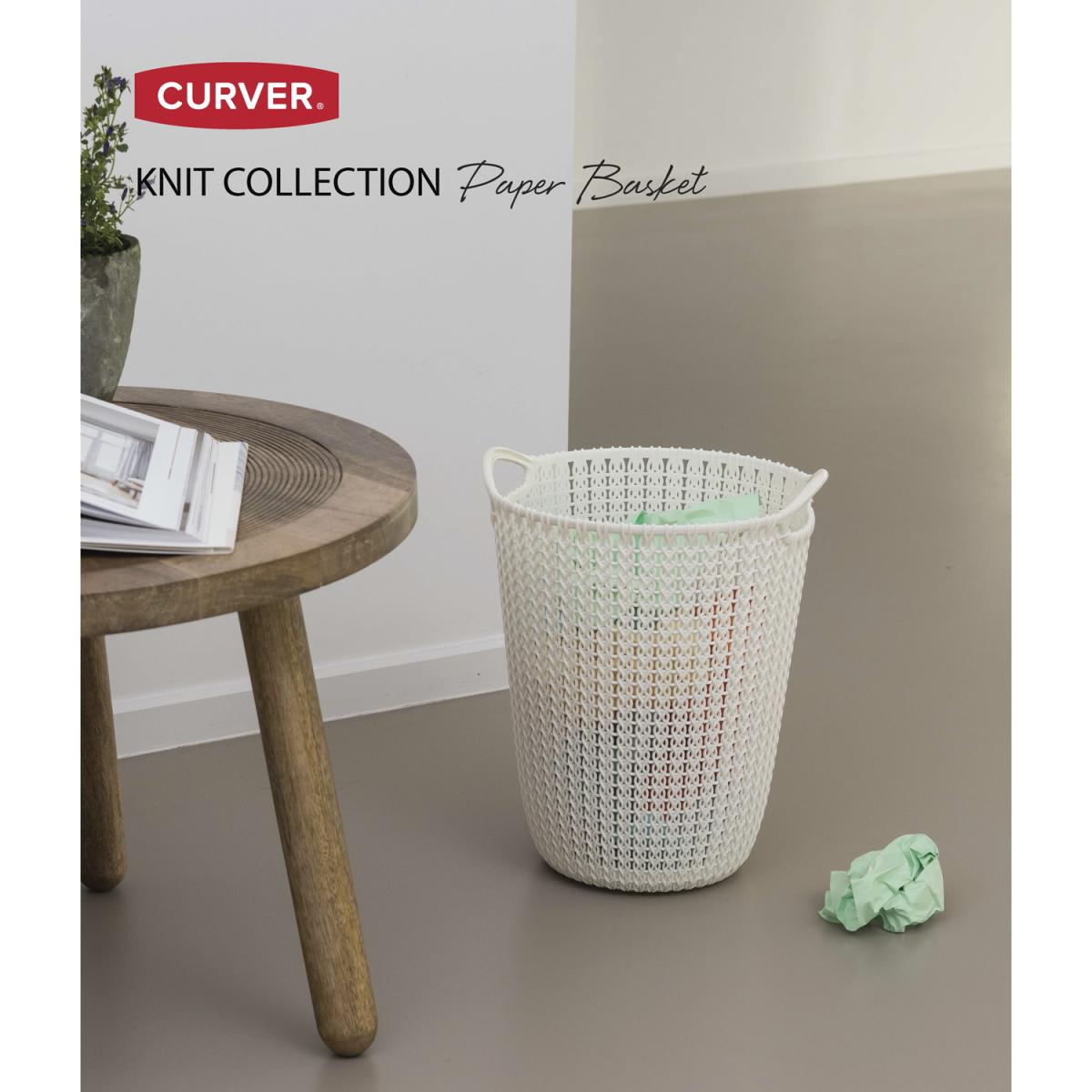 Woven together from strands of durable polypropylene, Curver's versatile Knit Paper Basket can be used in the bedroom, bathroom, office, or sitting room as a stylish waste-paper bin or storage solution. This convenient and lightweight basket is thoughtfully shaped with two handles and is easy to clean, making a practical and attractive addition to your home.