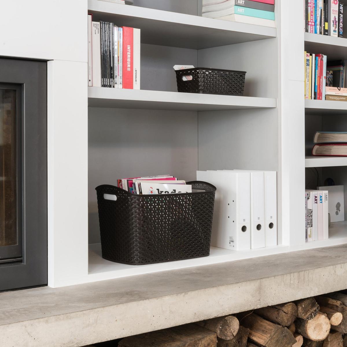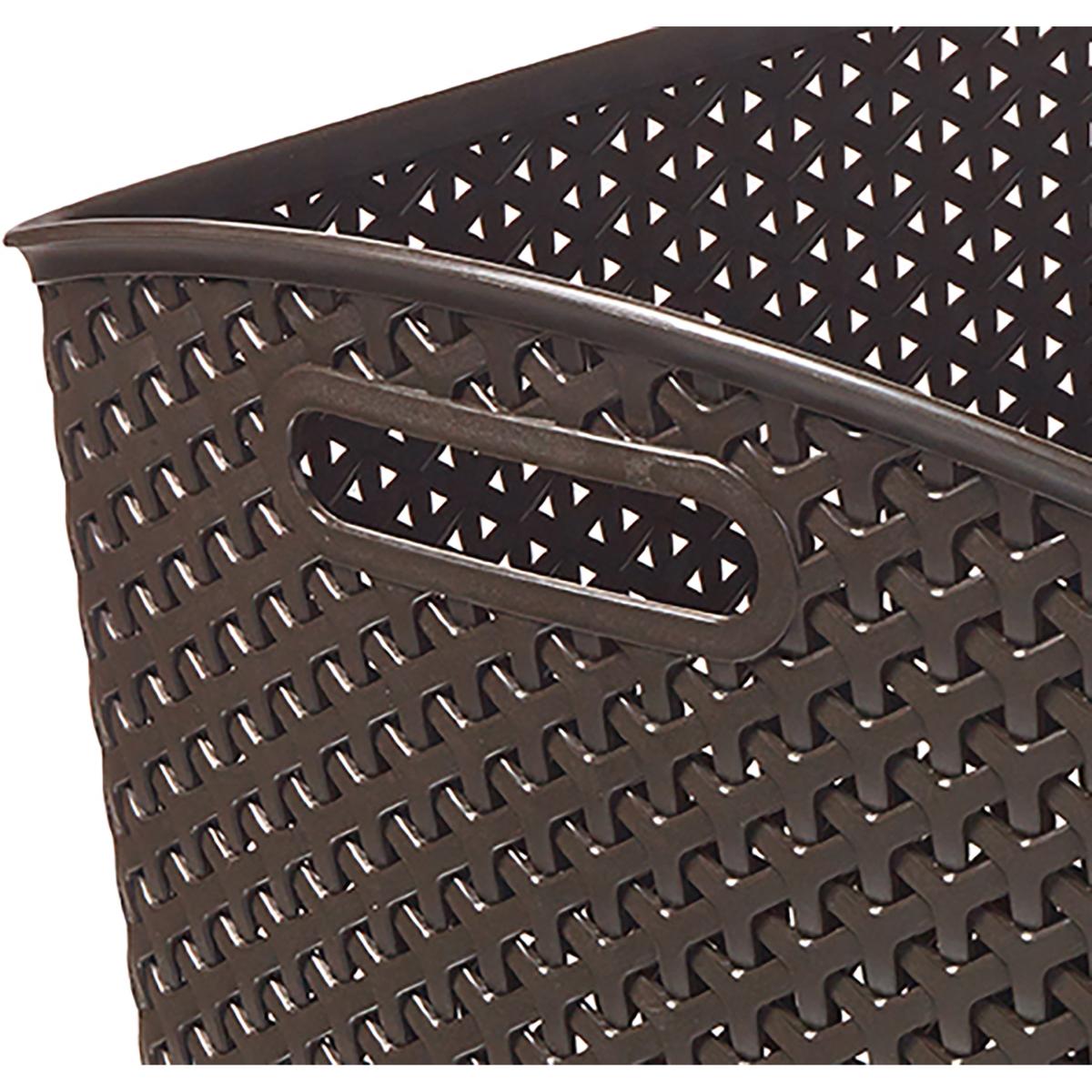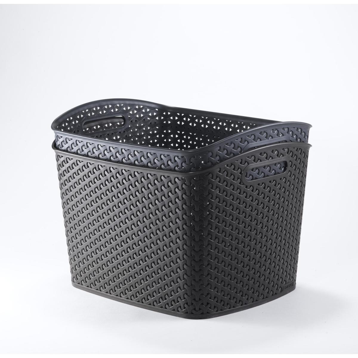 * Plastic Storage Basket* Rattan Design* 2 Handles for Grip Boasting two comfortable handles for a secure grip, this basket makes organising a breeze. Its exclusive rattan patented pattern adds a touch of modernity, elevating any room it graces. Versatile enough to find its place in your living room, bedroom, office, or even the bathroom, this extra-large basket embodies both practicality and aesthetic charm.