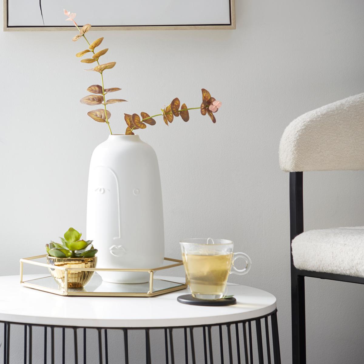 This stunning vase with a decorative face will add an element of artistic design flair to any room, with its modern colourway, complementing an array home of decors beautifully. This eye-catching piece is the perfect addition to any home, wipe clean only.