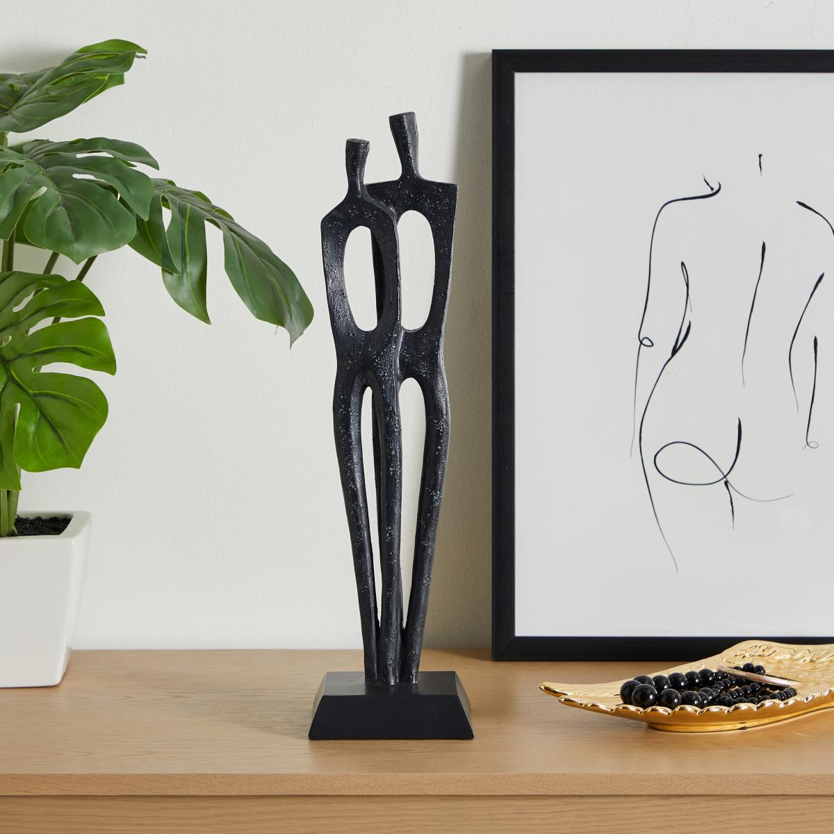 Add a decorative touch to your home with this stunning One Figure Couple Ornament, made from a durable polyresin material with a black metal effect, perfect for complementing a range of modern contemporary decors. This stunning ornament features a unique figure couple silhouette with a black stand.