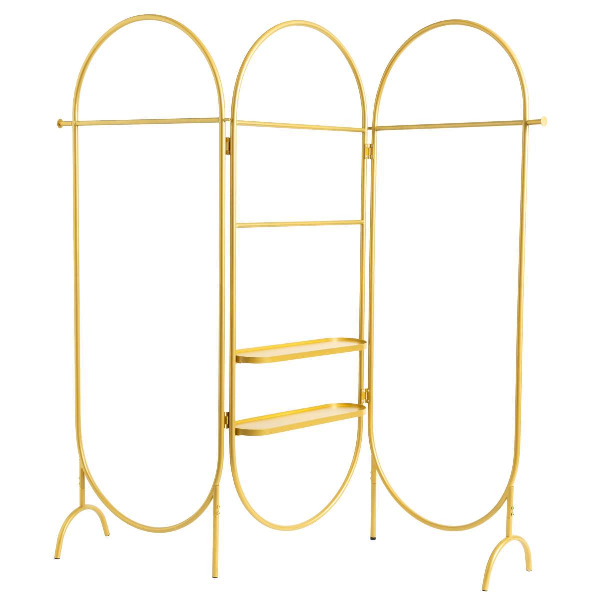 Perfect for adding a modern twist to the regular clothes rails, this Curves Gold Clothes Rail is ideal for adding a stylish storage solution to your room. With 2 handy shelves and 4 hanging rails, this rail is ideal for holding your clothes, shoes, and bags.