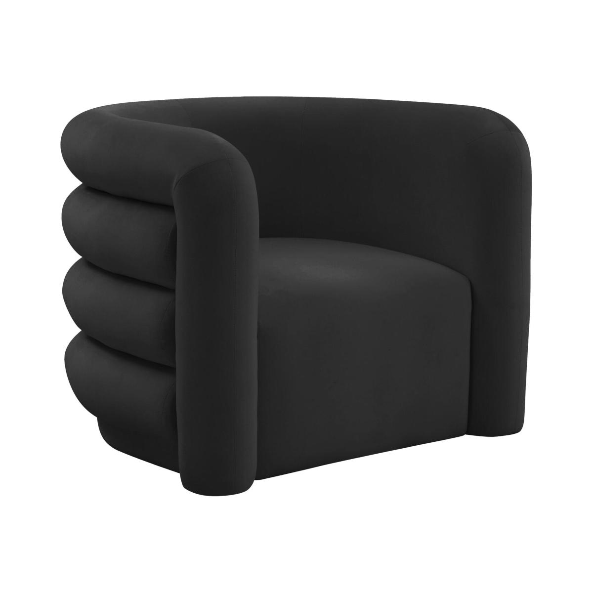 This black velvet armchair is a striking statement piece that works particularly well in modern, eclectic, or contemporary interiors. Its bold, sculptural design adds visual interest, making it ideal as an accent chair in living rooms or bedrooms. I love pairing it with minimalist or monochrome schemes, letting the texture and shape bring a sophisticated edge. For styling tips, consider placing it next to a glass side table with metallic accents to elevate its luxe feel, or add soft throws and cushions in contrast colours or textures to soften its bold silhouette. It’s versatile enough to work in a variety of settings-just remember to maintain balance in your space to highlight its unique design.
