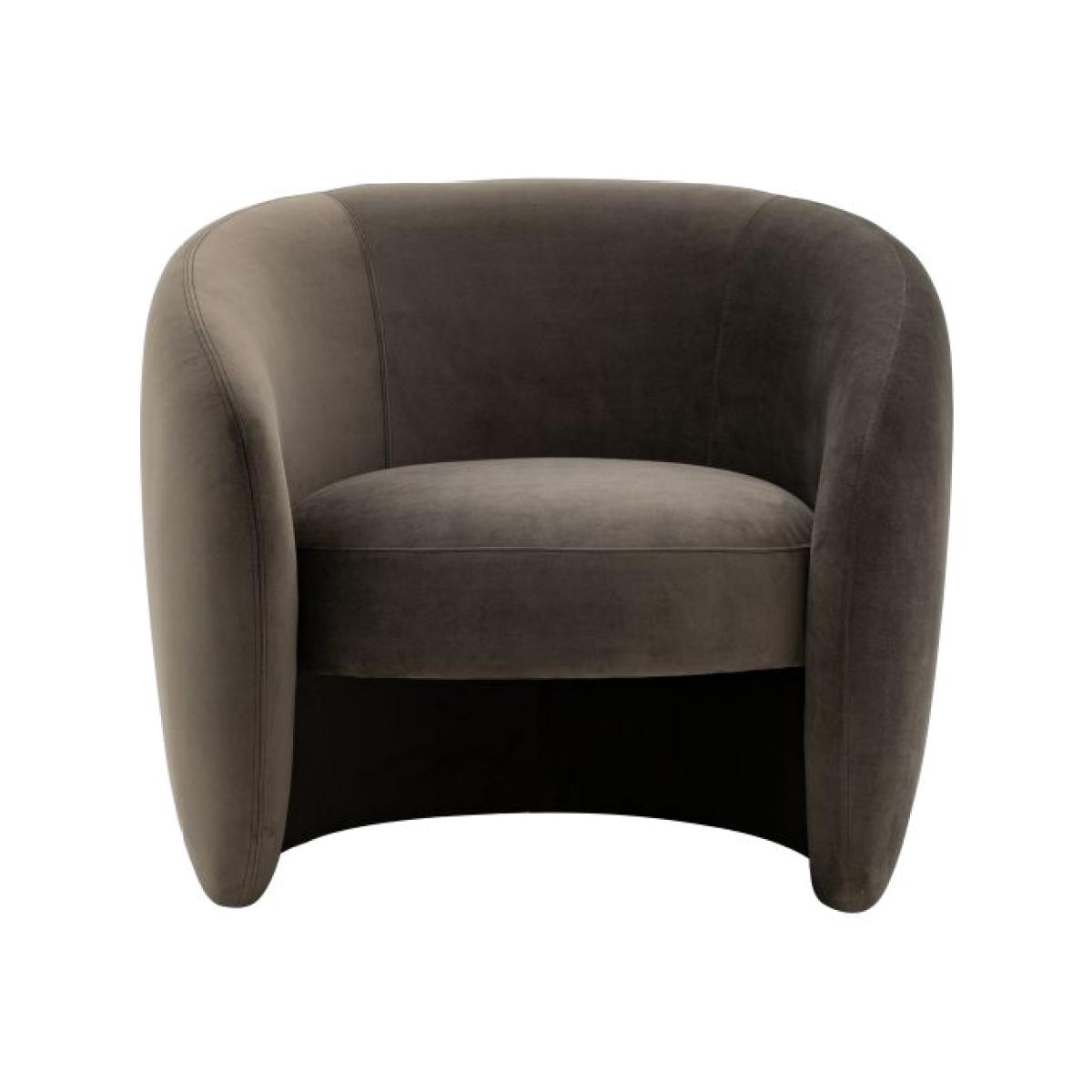 Curvaceous and cool this armchairs back wraps around the seat creating an unforgettable smooth form. In an espresso fabric this armchair has a hint of retro design making it the perfect fit for any interior, from the modern to the vintage inspired it will will fit right in. Also available in cream and green.