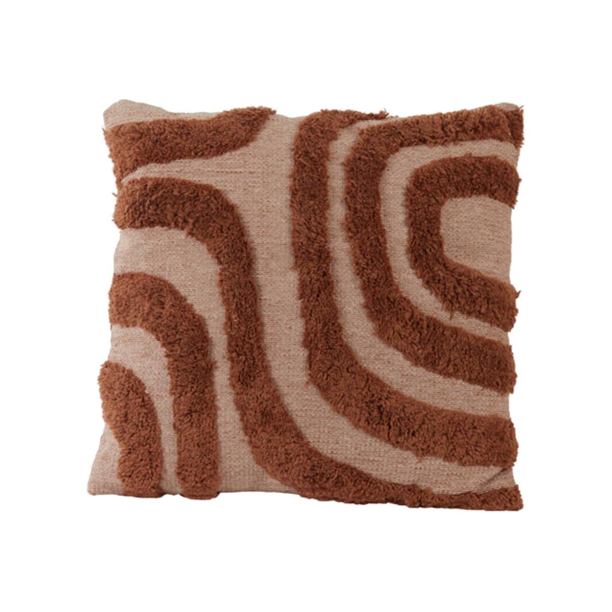 Curvy Patterned Cushion, Square, Brown Fabric | Barker & Stonehouse