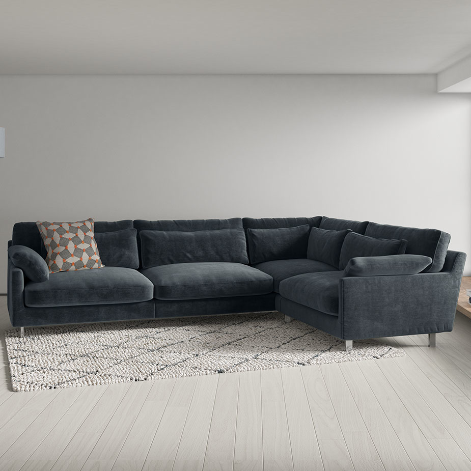 Made in Italy, the Cuscino corner sofa has soft, feather-filled scatter cushions for a supremely comfortable sit. With plump fibre and feather back cushions and foam and feather seat cushions, the sofa lives up to its name, while slender chrome legs keep it chic. Exclusive to Habitat, Cuscino combines luxurious design details with quality construction for everyday practical use and is available in a wide choice of fabrics, colours, sizes and configurations.