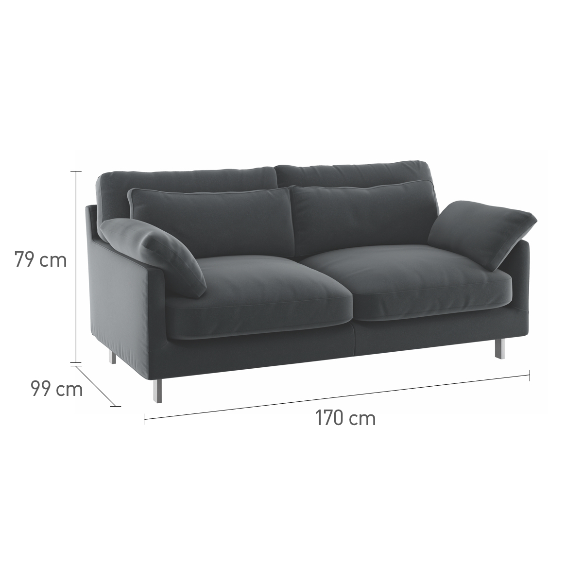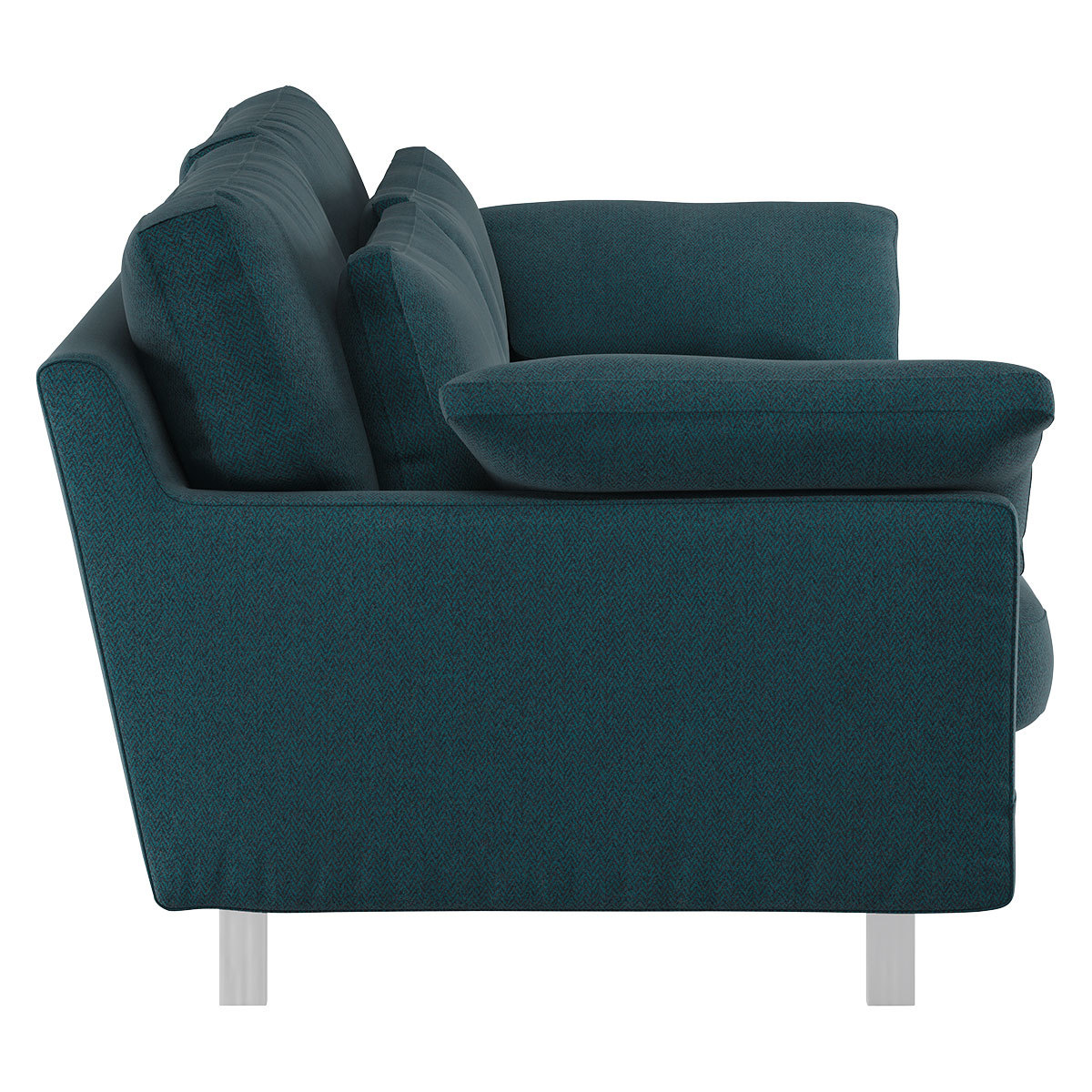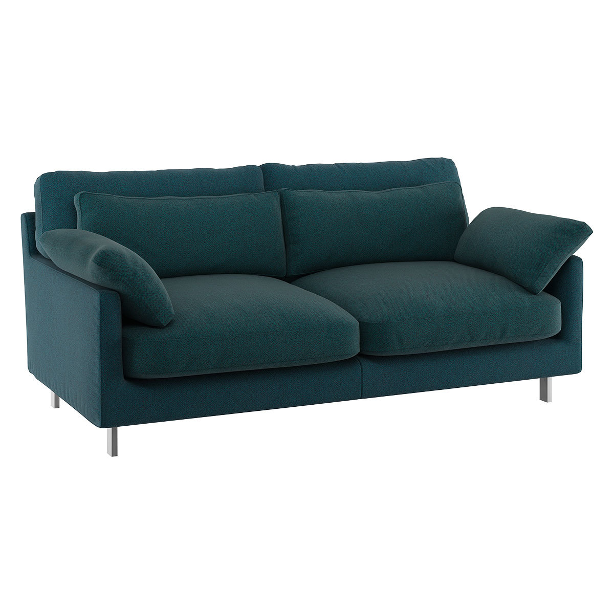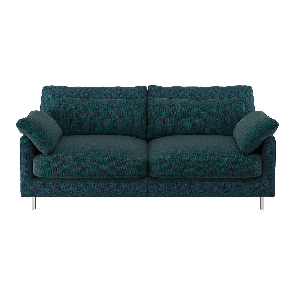 Made in Italy, the Cuscino teal herringbone wool mix 2 seater sofa offers an abundance of soft, feather-filled scatter cushions. With plump fibre and feather back cushions and foam and feather seat cushions, this is a supremely comfortable sofa that lives up to its name, while slender chrome legs keep it chic. Exclusive to Habitat, Cuscino combines luxurious design details with quality construction for everyday practical use and is available in a wide choice of fabrics, colours, sizes and configurations.