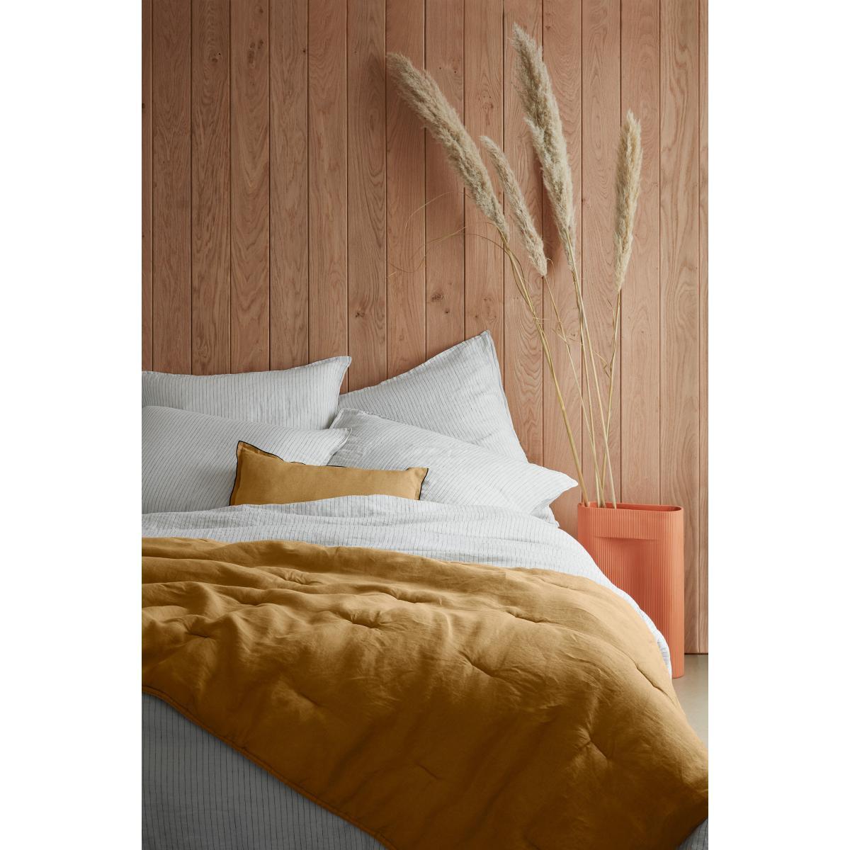 Creative and timeless, the AU PRINTEMPS PARIS bed linen collection showcases noble, natural materials for diverse, inspiring interiors. Very trendy, washed linen has a natural crumpled appearance, both relaxed and elegant. Hypoallergenic, washed linen absorbs moisture for a real feeling of freshness. Its natural properties ensure relaxation, well-being and promote sleep. What’s more, it’s easy to look after (washable at 60°C, no ironing). The colours and light patterns are classic and timeless. The AU PRINTEMPS PARIS bed linen collection skilfully mixes washed cotton percale and washed linen. Soft, natural colours are joined by ochre or copper tones. Materials and colours combine and reinvent themselves endlessly. The mix and match of colours and materials are simple and effective, creating unique, singular offerings.