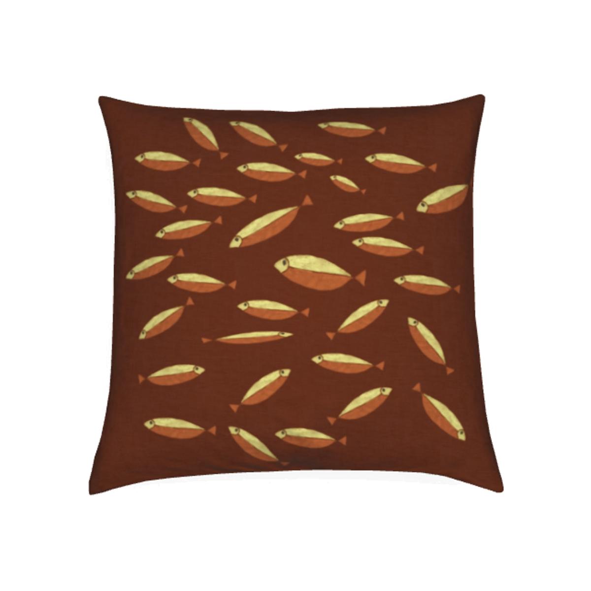 Inspired by contemporary art, this cushion features yellow-brown little fishes that are drawn in rustic style. The drawing takes up both sides of this handmade 50x50 cm cushion cover. This cheerful fish swarm grants a homey feel to any room. The vibrant brown colour and the sense of airy simplicity of the cushion cover lifts up any mood even on a cloudy day. Pair this cushion cover with a cozy sofa in contrasting colour or a wooden chair for a radiant ambience. Cotton-Linen 228 gsm Cotton 95% / Linen 5% Wash at 30°C Low tumble dry heat Hang to dry Do not wring Low heat iron
