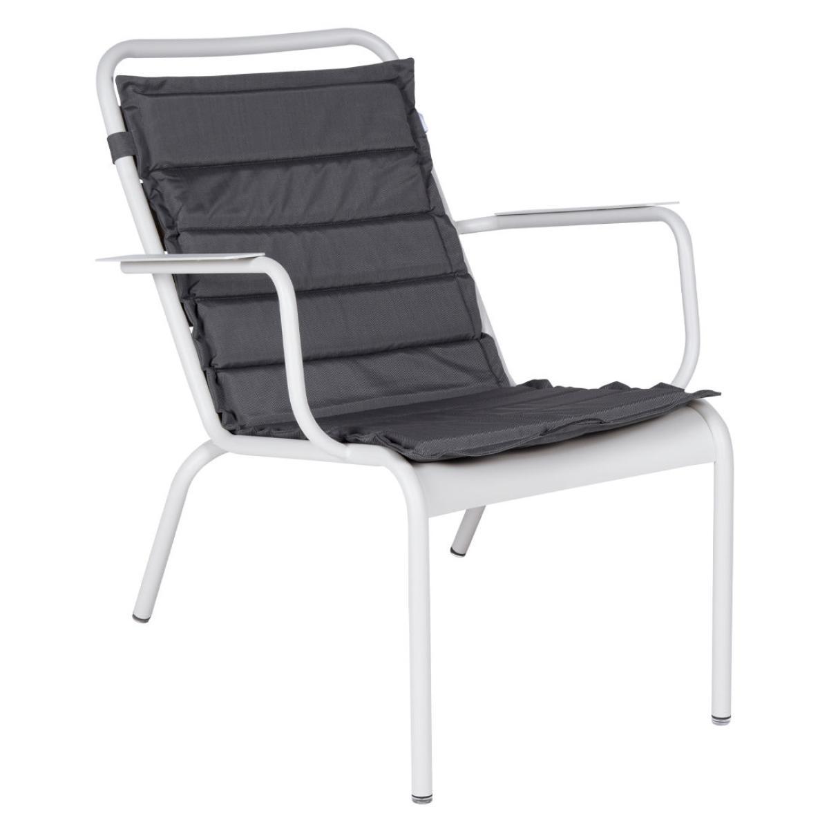 Specially created to cover the seat and back of the Luxembourg low armchair. This large cushion provides excellent comfort thanks to its foam padding with quilted effect. Made from an elegant cloth with a fine finish (over-stitching), it’s as attractive as it is easy to live with: tear-resistant and able to withstand everything the elements can throw at it (sun, rain, humidity), it doesn’t hold water and has no problem staying outside. It’s easily cleaned with soap and water. For perfect support, it attaches to the back with a tie. For easy storage, it rolls up and stays in the folded position thanks to a button and an elastic strap. The price corresponds to the cost of the cushion alone: Luxembourg low armchairs sold separately.