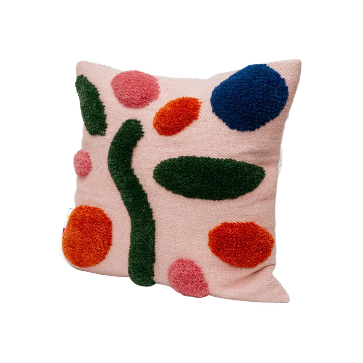 I love this cushion for its playful yet tactile design, which adds personality without overwhelming a space. The hand-woven recycled wool texture gives it a cosy feel, making it ideal for eclectic, boho, or modern interiors that embrace colour and craftsmanship. It works particularly well on neutral sofas or beds to inject colour and texture, and layering it with other cushions can create a curated, inviting look. For practical styling, pair it with more subdued pieces for contrast or mix with other textiles to highlight its artisanal appeal. Its compact size makes it versatile and easy to position, whether as a statement piece or part of an eclectic gallery of cushions.