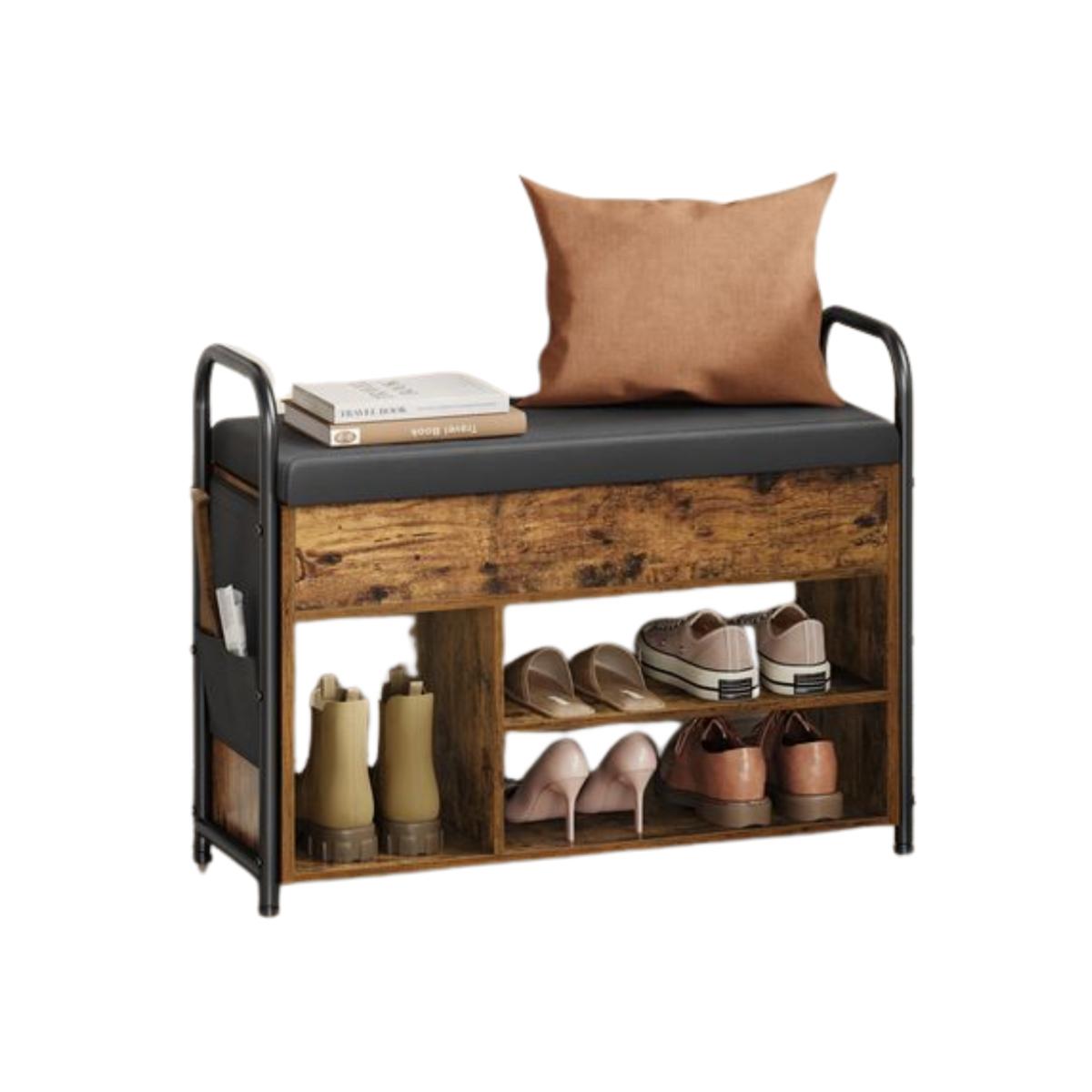 The spacious compartment beneath the lid offers ideal storage for everyday essentials like gloves and umbrellas, while the lower shelves accommodate shoes of various heights for organised and accessible footwear storage. Two PU leather side pockets provide quick-access storage for smaller items such as keys, shoehorns, or reusable bags, perfect for streamlining your daily routine. Equipped with two durable support hinges, the lid stays securely open at any angle, allowing for safe, hands-free access and protecting fingers from accidental pinching. Enjoy a generously padded 5cm cushion with a sleek PU cover for easy maintenance. Smooth, rounded side handles make repositioning the bench effortless and safe. Crafted with a 22mm thick steel frame and quality particleboard, this entryway bench supports up to 91kg. Adjustable feet ensure excellent stability, even on uneven surfaces.