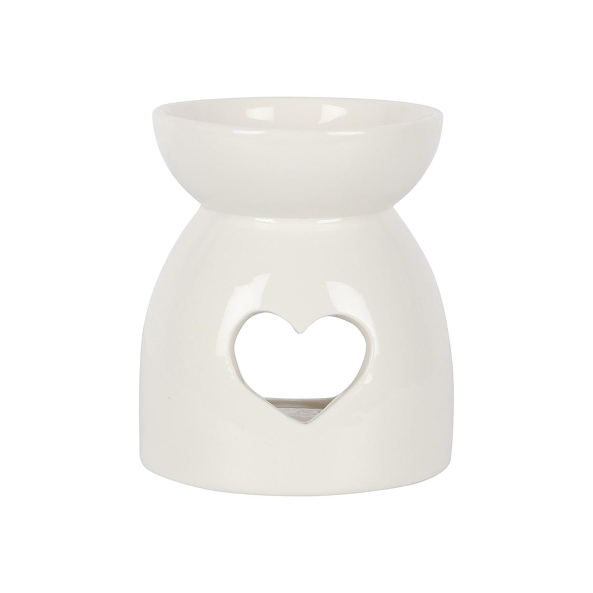 This simple and understated oil burner and wax warmer comes in a crisp white that suits a wide variety of decor styles. A heart cut out makes a sweet added touch that will be loved by many. Compatible with fragrance oils and wax melts