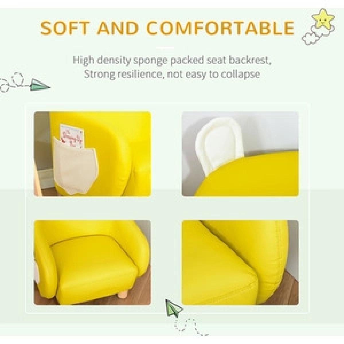 This mini sofa armchair from HOMCOM gives your children a space to relax! A wood frame for a solid structure to hold up to 65kg, its surface is made of PU leather, waterproof, lightweight, and breathable. Sponge cushioned seat, backrest and armrest provide a soft and comfortable experience for your little one. Without sharp corners and hard edges, this sofa prevents kids from being injured. The spacious seat design enables kids and adults to sit and relax comfortably on the sofa!