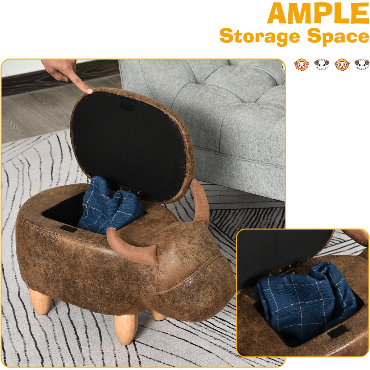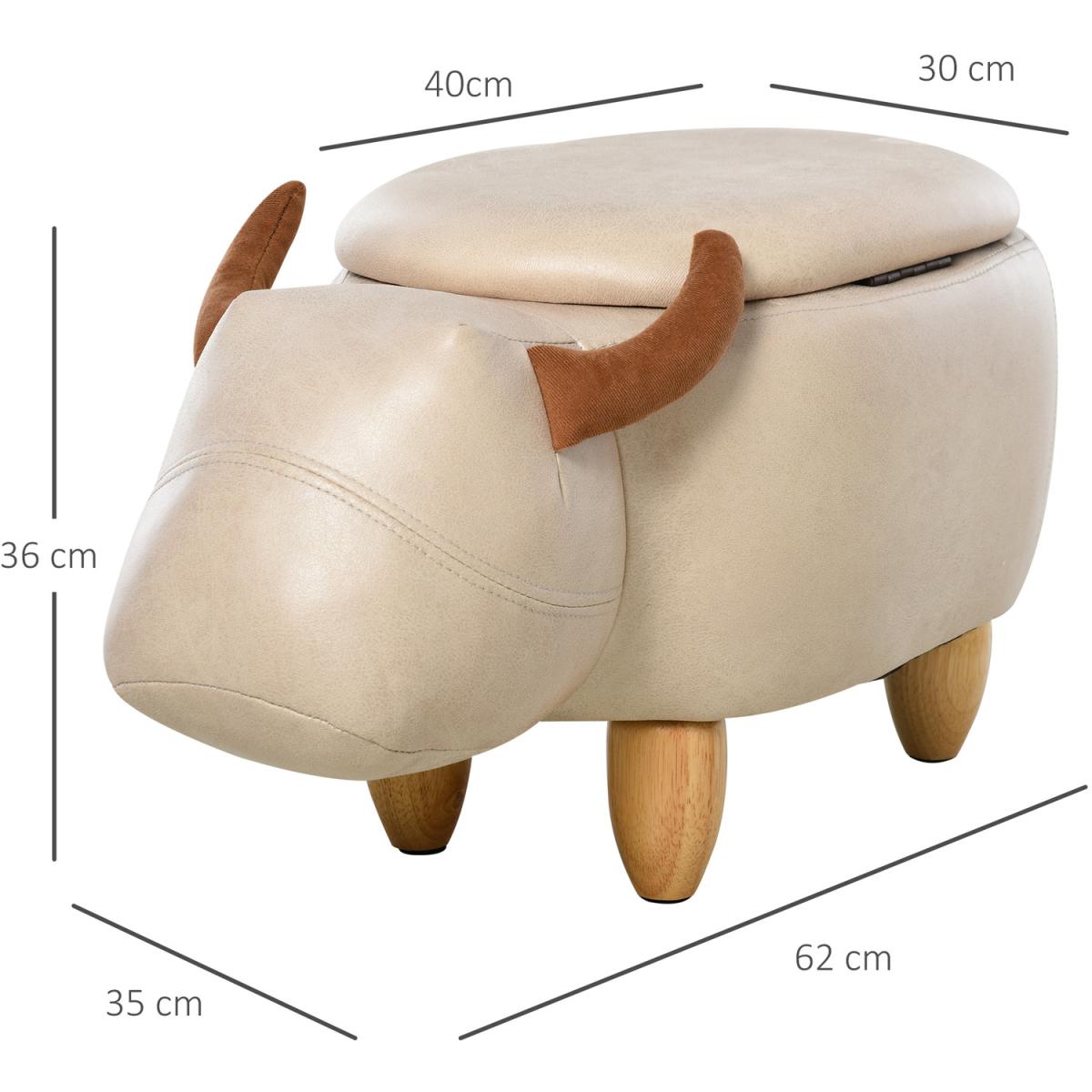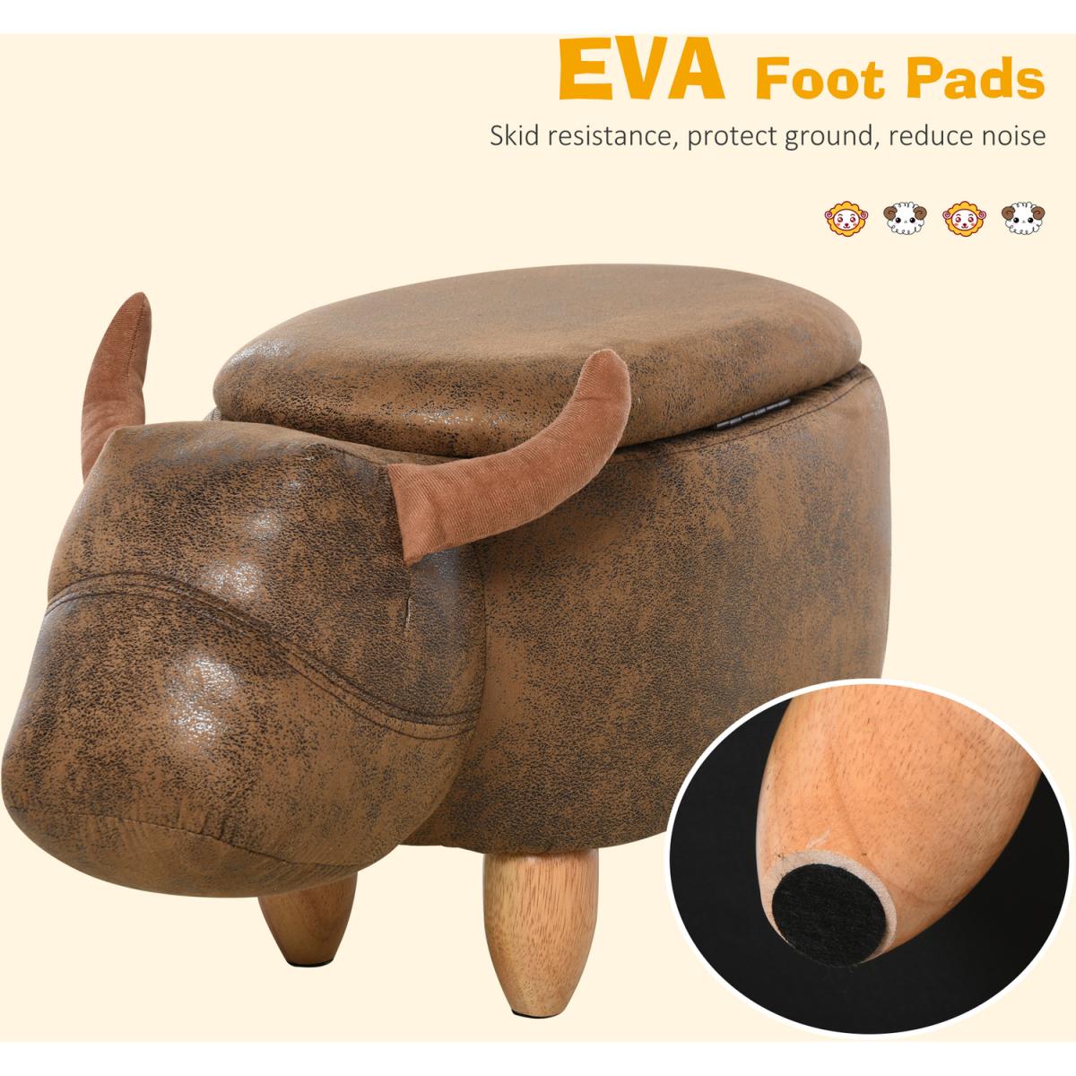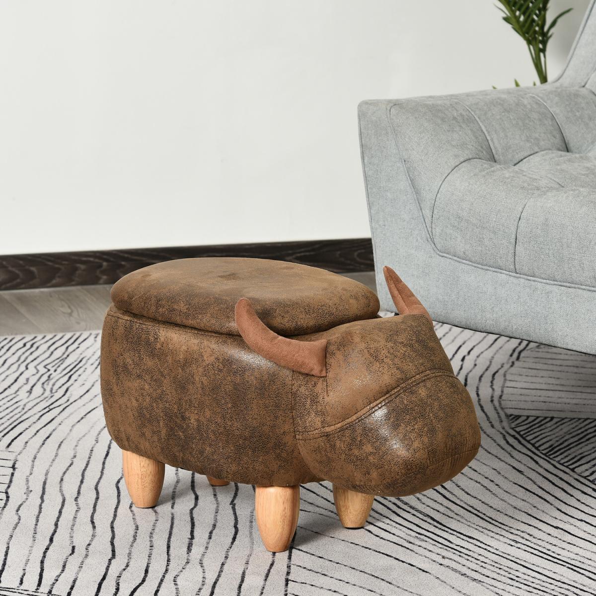 Go wild for this fun and adorable brown Buffalo storage stool from HOMCOM. Made with a rubberwood frame to ensure it is tough for everyday use, it features a spacious 18x22cm storage compartment, giving plenty of room for keeping books, small toys and other bits neatly together. It is filled with sponge on the outer for safety, with smooth suedette upholstery for easy cleaning. Four wood legs for sturdy balance to the structure and an easy-lift lid finishes this piece.