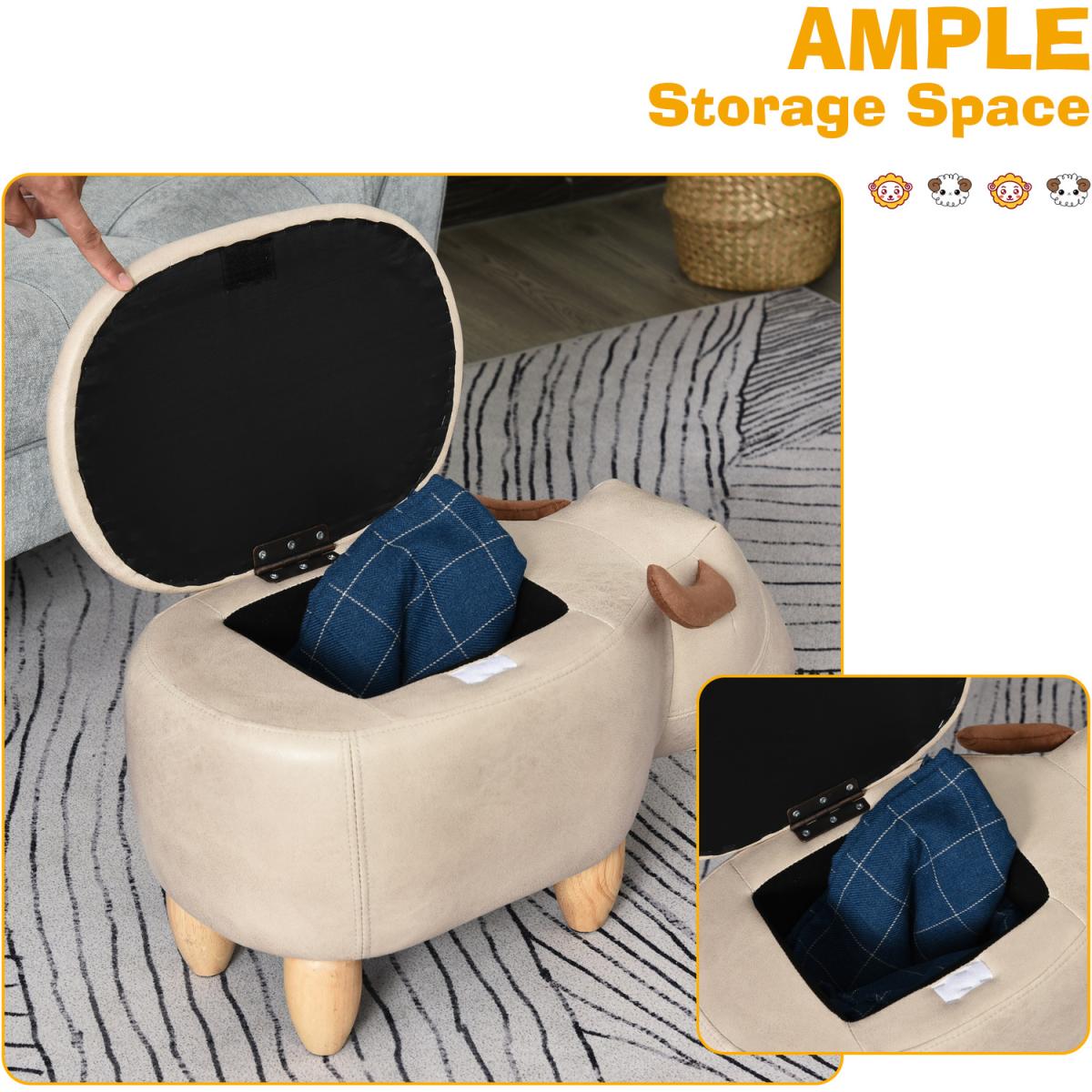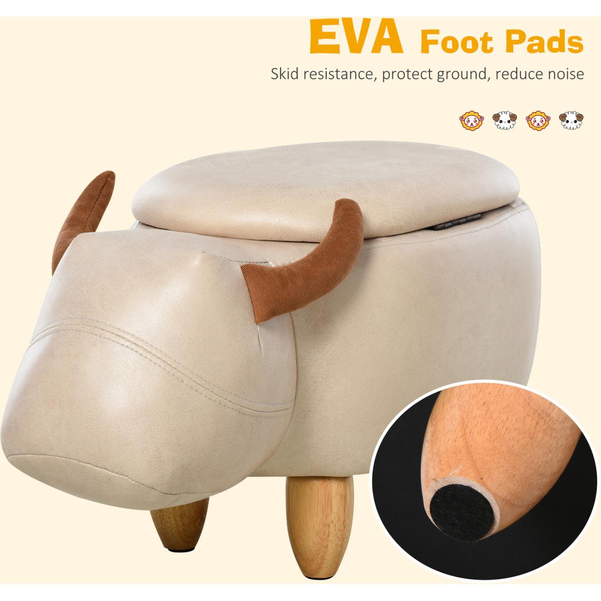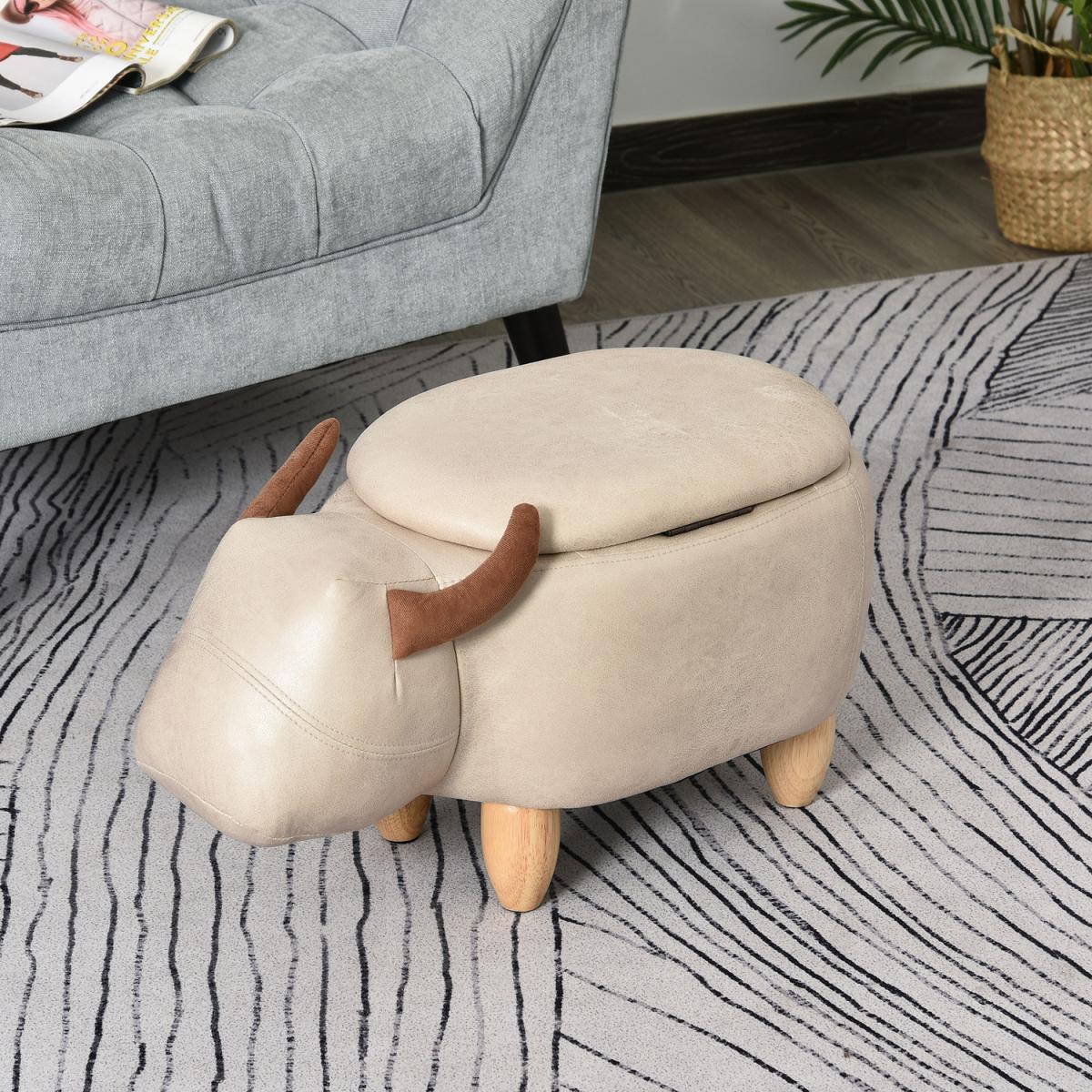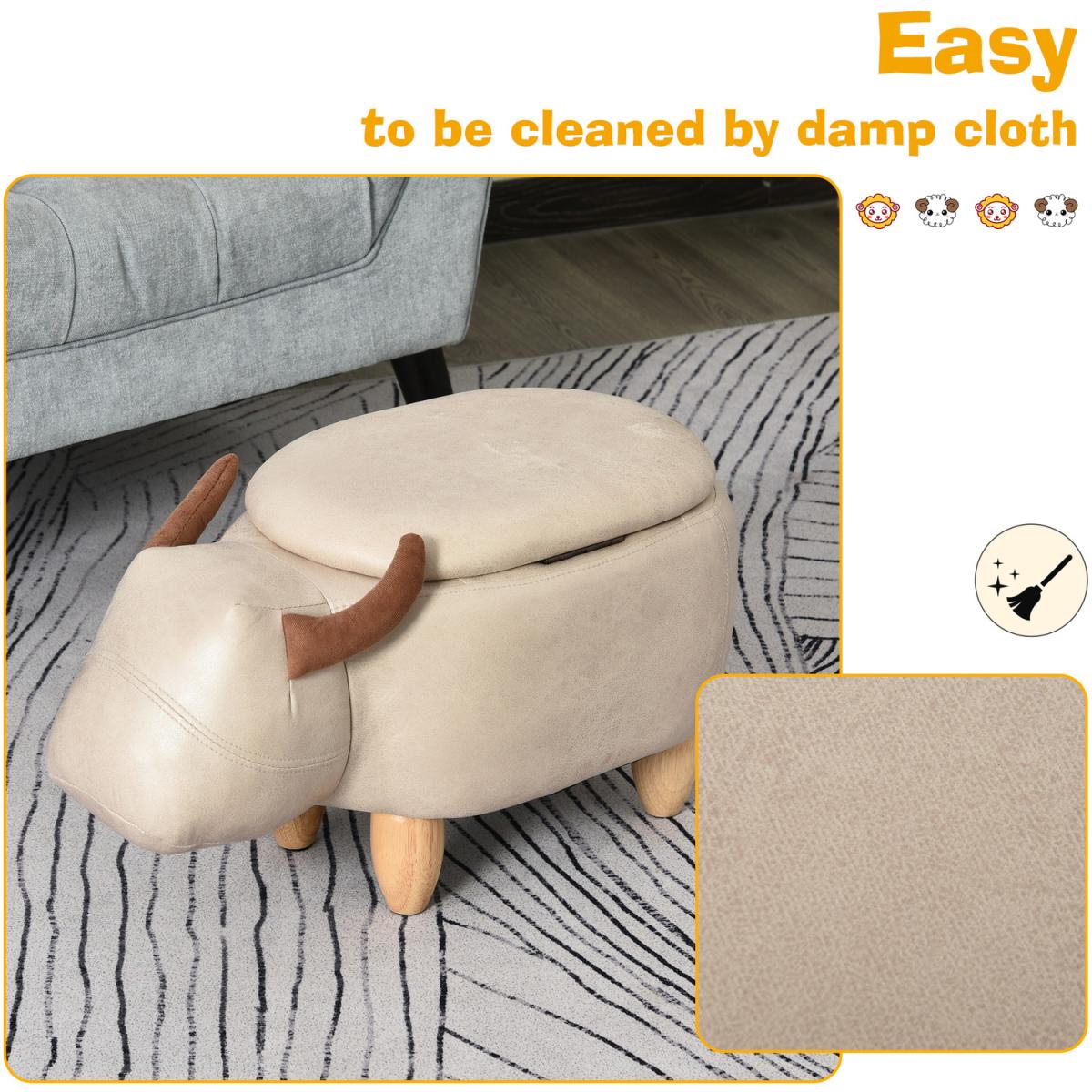 Go wild for this fun and adorable brown Buffalo storage stool from HOMCOM. Made with a rubberwood frame to ensure it is tough for everyday use, it features a spacious 18x22cm storage compartment, giving plenty of room for keeping books, small toys and other bits neatly together. It is filled with sponge on the outer for safety, with smooth suedette upholstery for easy cleaning. Four wood legs for sturdy balance to the structure and an easy-lift lid finishes this piece.