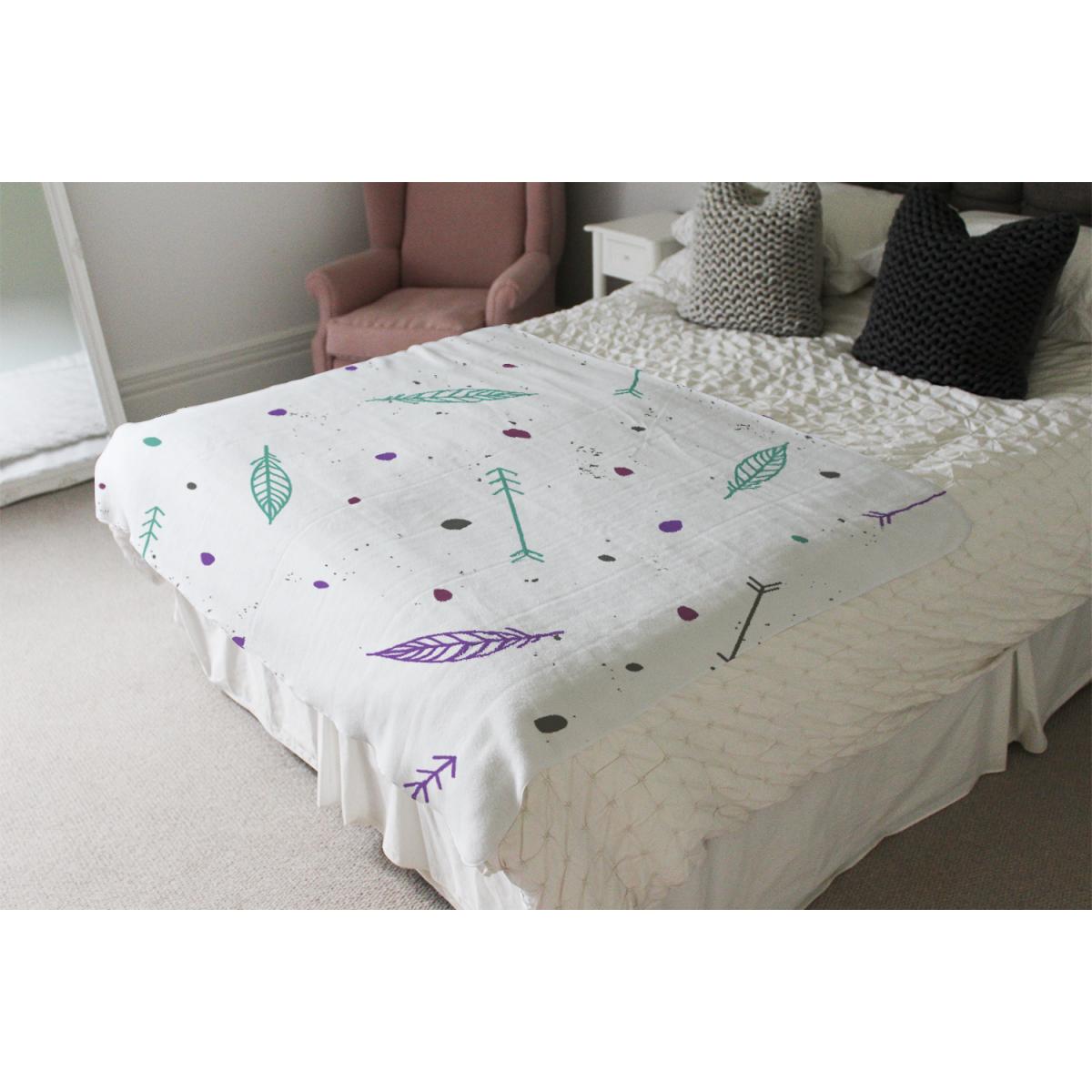 Cute Cartoon Feathers And Arrows In Boho Style Blanket - Green