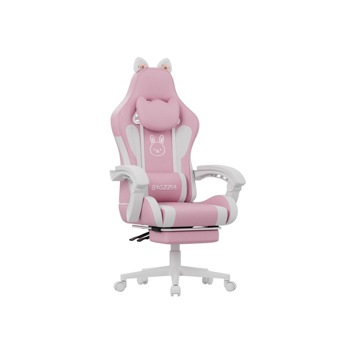 What sets this game chair apart are the cute cat ears on the backrest, the cat-shaped headrest and the cat-like cartoon characters. These whimsical little touches add a delightful pleasure and create an instant connection with anyone who sees them. The cat ears and headrest are removable and can be replaced with your favourite decorations. The skin-friendly and soft gamer chair uses a leather finish overall material that is resistant to scratches, stains, peeling and cracking, while also being breathable, and easy to clean. The original cat head logo is presented using embroidery, which is a more sophisticated way to present this chair. Cushions, backrests and armrests of computer office chairs are filled with high-density foam to ensure a comfy seating experience, that will retain its form after long periods of use. We specifically chose the linked armrests for this gaming chair. They can promote proper ergonomic positioning for your arms and shoulders. The padded armrests retract when the seat is reclined to give you a comfortable sleeping position. It's great for both girls and women. Matched with the headrest and massage lumbar support, which will relax your tired waist energetically. The retractable footrest can be adjusted at will. A real game chair that meets the needs should be so an adjustable unique headrest with a perfect curve to fit the neck. Raised lumbar pillow to provide better support. The gaming chair plus a 135 degrees reclining back and linked armrests, can satisfy your relaxation needs. Height adjustment, 360-degree swivel and smooth casters ensure high mobility and freedom. Not only for gamers, it's also the perfect partner for work, play, reading or napping. The gaming chair comes with all the necessary hardware and detailed instructions for easy assembly. The estimated assembly time is 20-30 minutes, allowing you to set up and enjoy your new chair quickly.