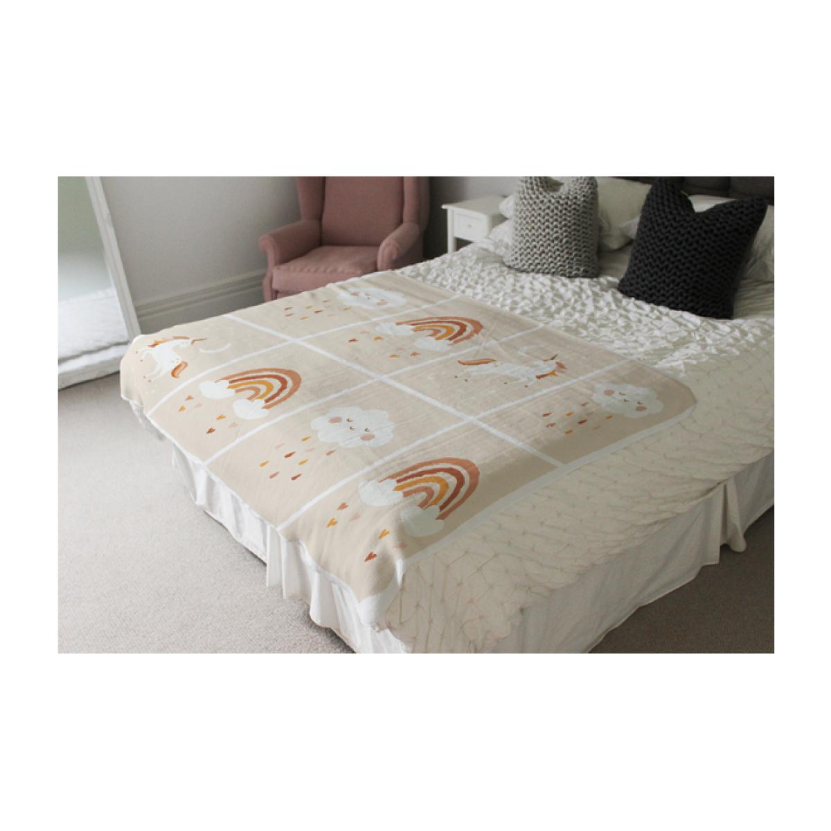Cute Hand Drawn Unicorn Rainbow and Cloud Designer Blanket - Brown
