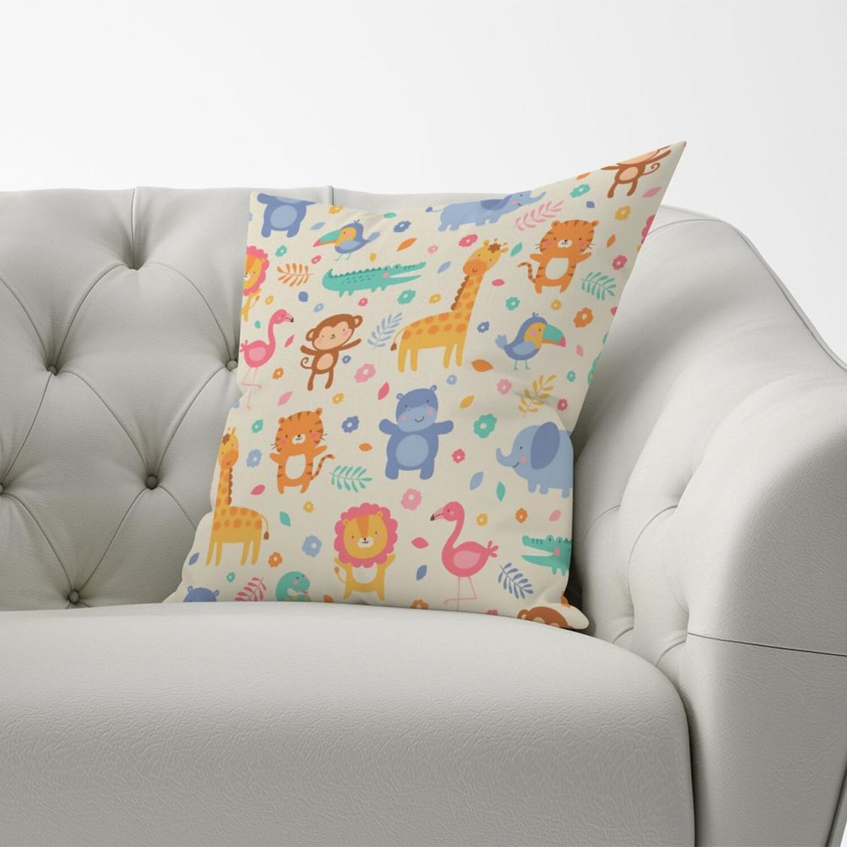 Cute Pastel Jungle Animals Cushion - Yellow / 60cm