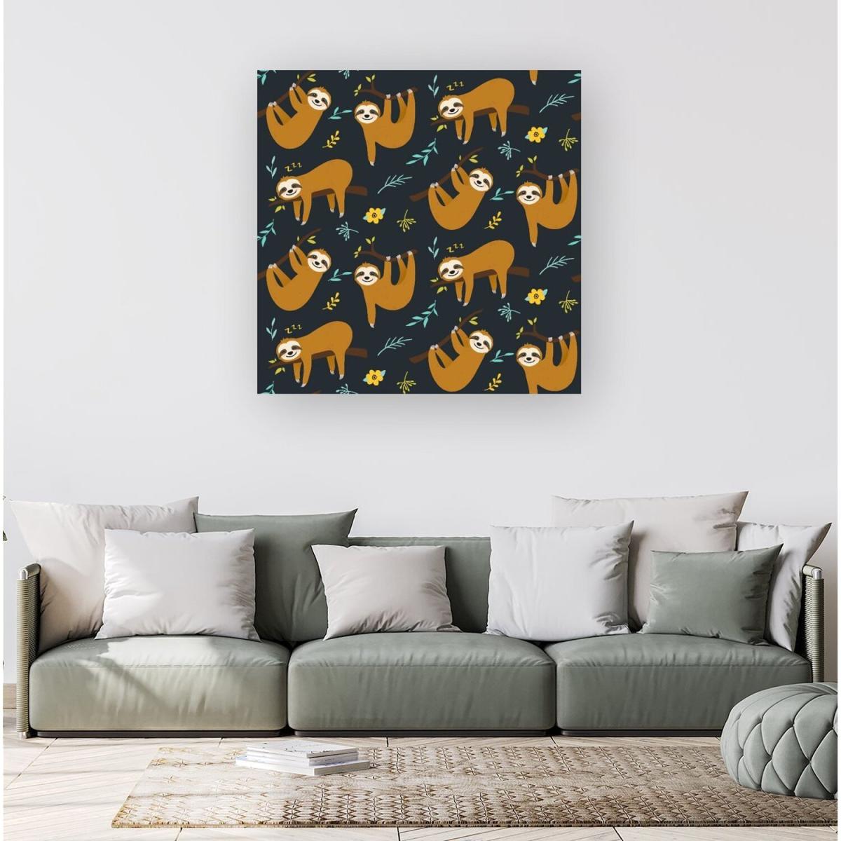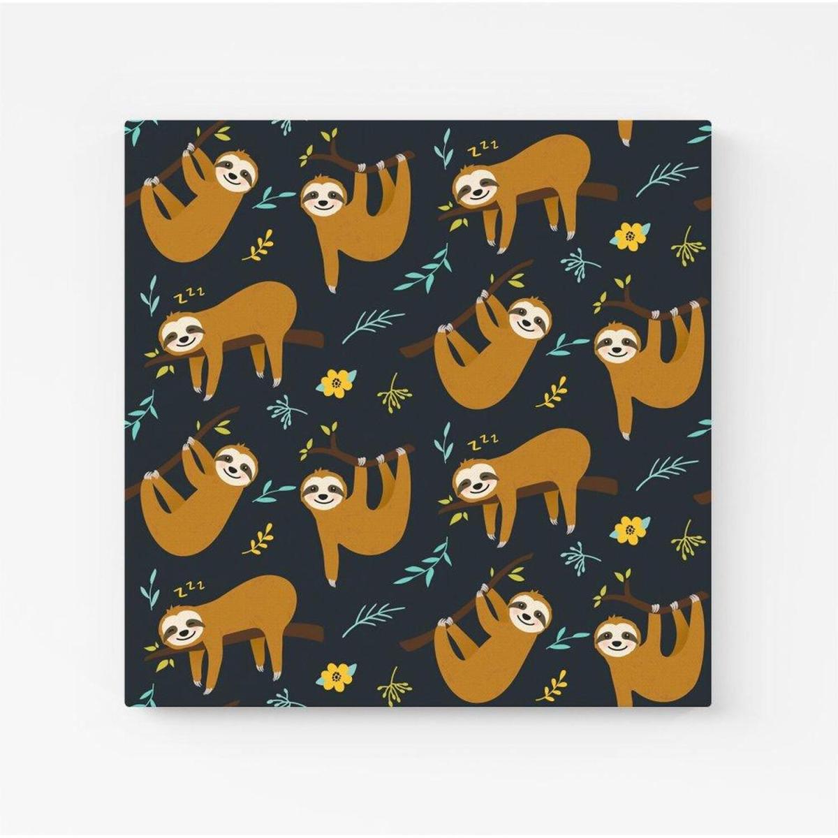 Cute Sloths Canvas Print - Blue / Small