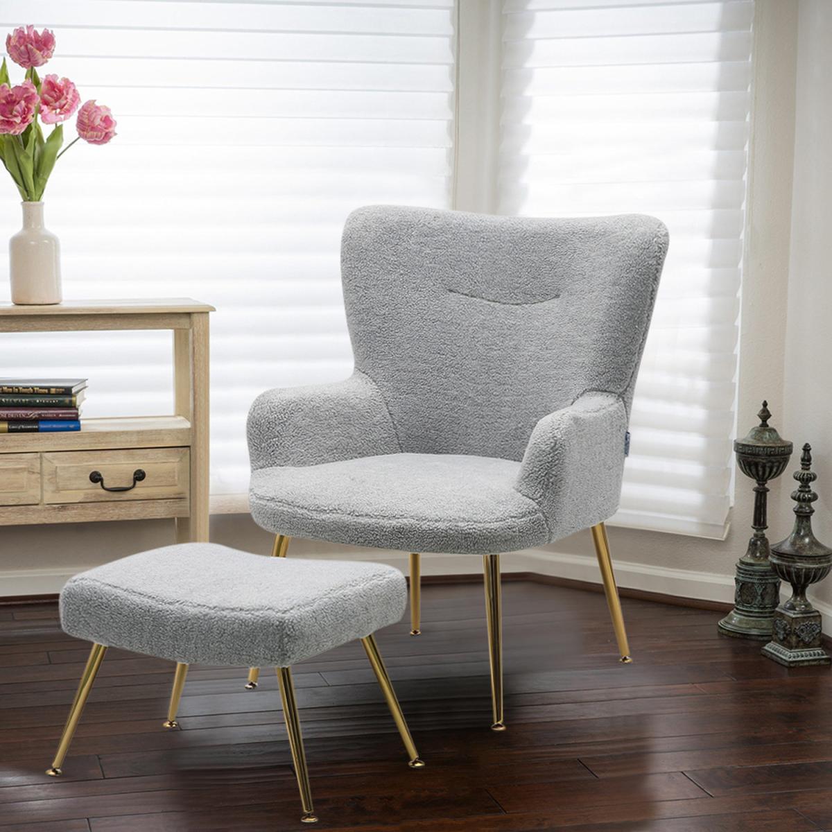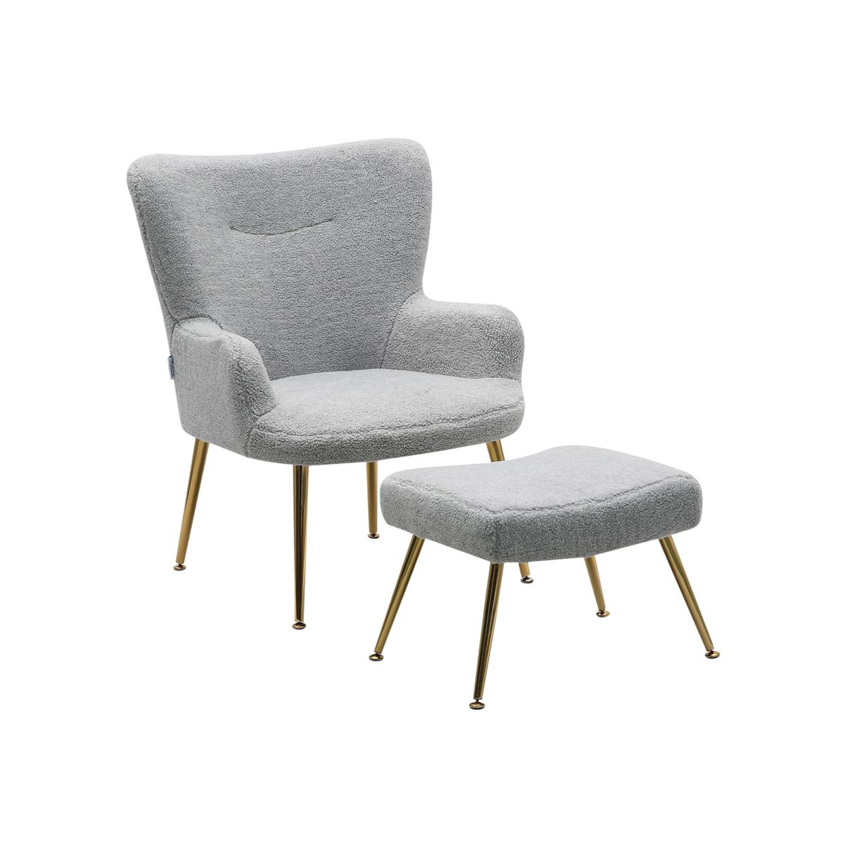 Give your living space or bedroom a new pop of colour with this smile chair. This is a simple accent chair with an ergonomically curved back and Sewn a curved line to form a smiling face as design highlights. Upholstered in high-quality fabric and filled with dense foam, with a curved armrest and footstool, the chair undoubtedly offers soft touching and comfortable seating experience.