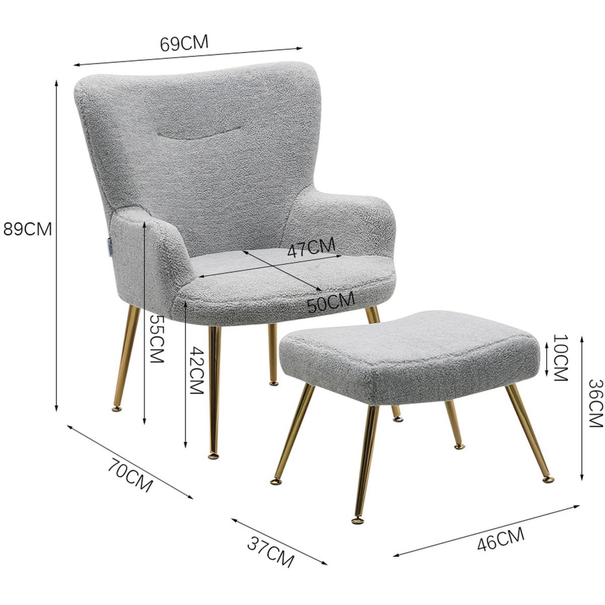 I love the way this little chair and footstool combo adds a touch of retro charm to any room. The grey fabric makes it versatile, effortlessly fitting into both modern and vintage-inspired interiors. It works particularly well in cosy corner nooks, home offices, or bedrooms, providing both style and comfort without overwhelming the space. For styling tips, pair it with soft textures like throws or cushions for a layered look, or layer it with contrasting colours and patterns to create visual interest. Its slender, tapered legs give it a light, airy feel, making it a practical option for smaller spaces while still delivering on comfort.