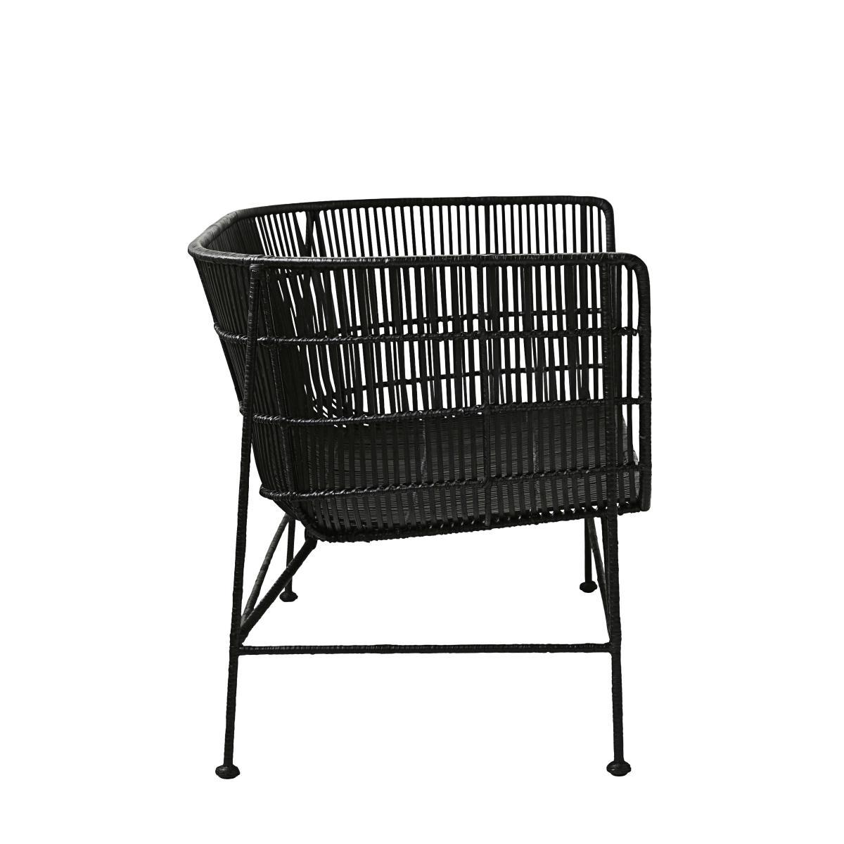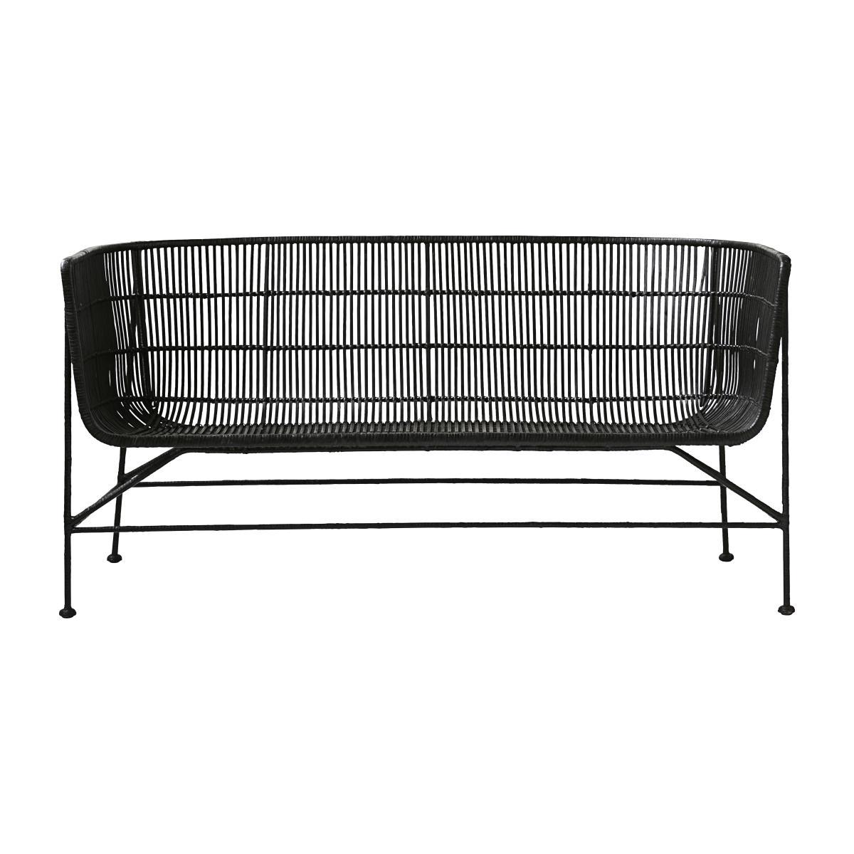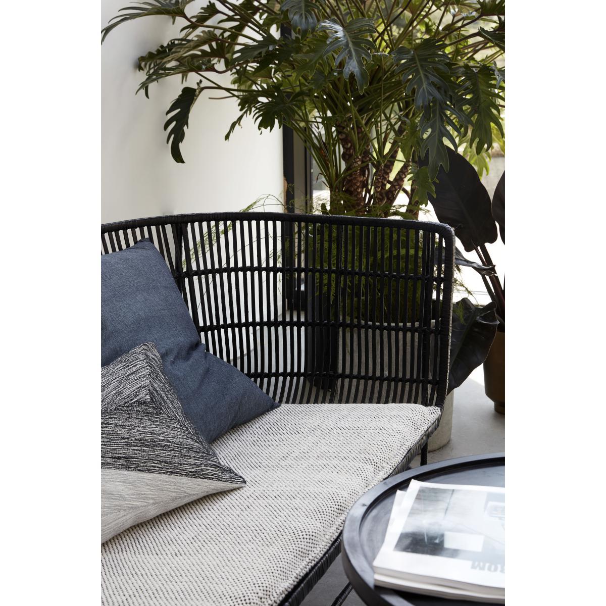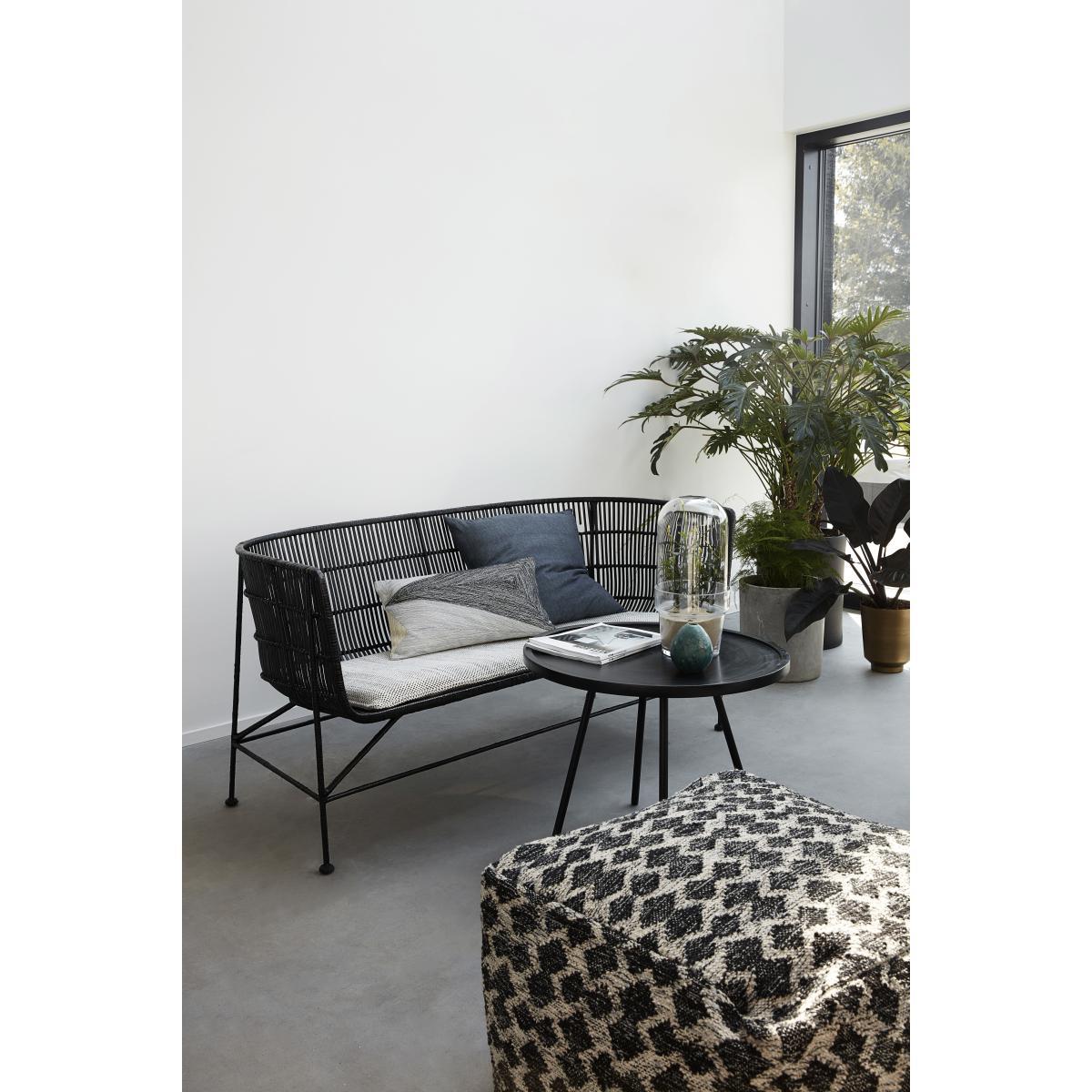 Retro and bohemian spirit for this charming rattan bench inspired by 1950's Scandinavian furniture. Openwork, airy seat that combines harmoniously with the modern and graphic feet. Fully covered in rattan, the fine metal structure draws clean and precise geometric patterns in space. This seat is perfect for a winter garden style living room, entrance, dressing room or veranda. Warm and authentic, the rattan looks great everywhere and accommodates all styles. The black colour adds a modern and current style to rattan. Do not hesitate to pile on cushions to decorate your bench and give it a cosy style. A fitted seat cushion for the Coon bench is sold separately.