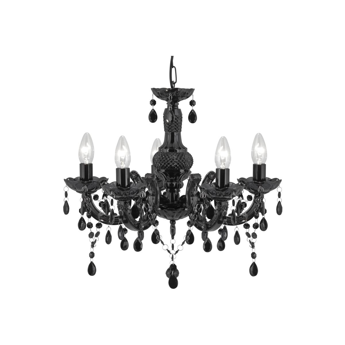 The spectacular, stylish Marie Therese 5 light chandelier with a matt black finish has an aristocratic style, perfect for adding a theatrical touch to any large room. A traditional design with a modern twist, this ceiling light is luxuriously adorned with matching pear-shaped drops